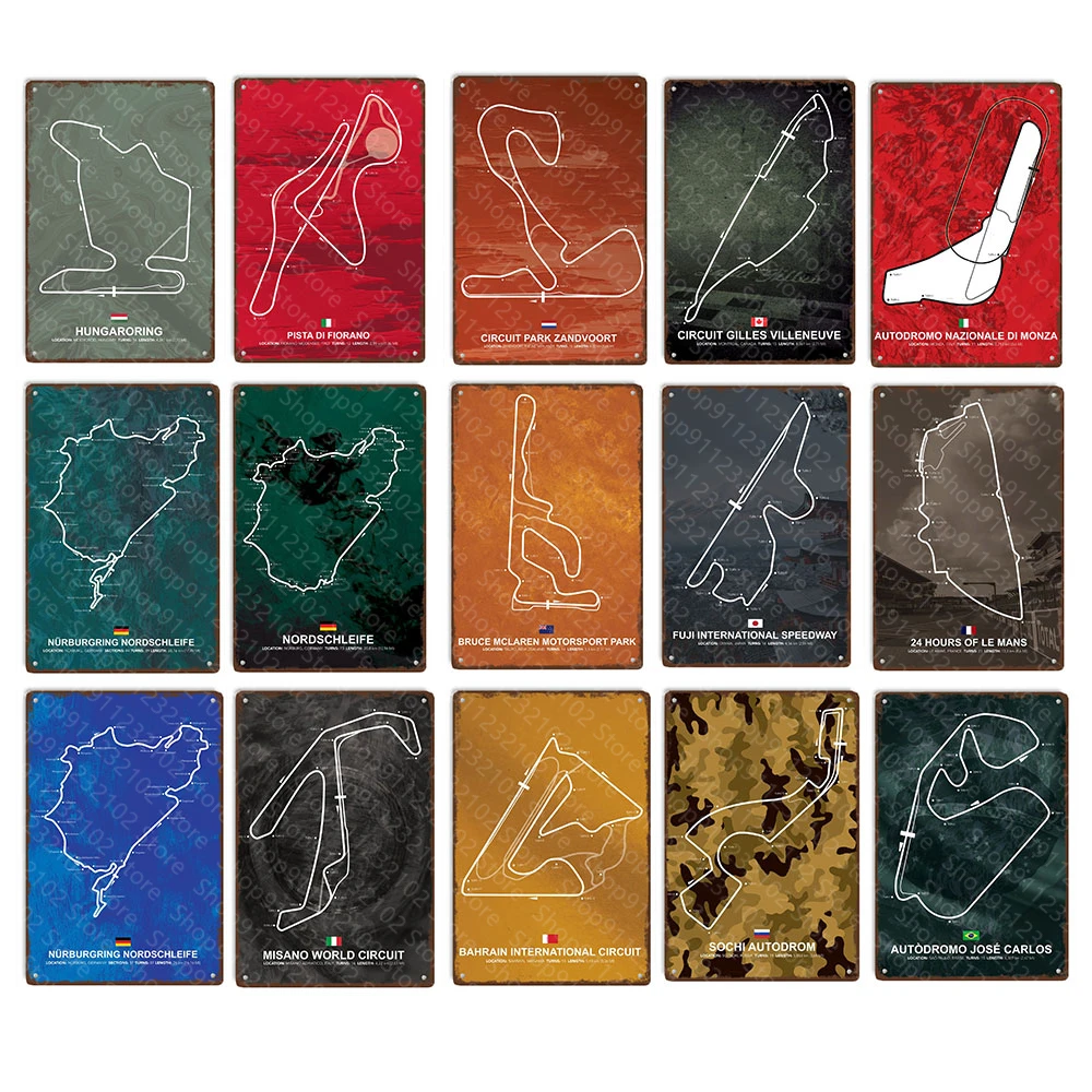 Металлический жестяной знак F1 гоночный трек, железная картина Олов...