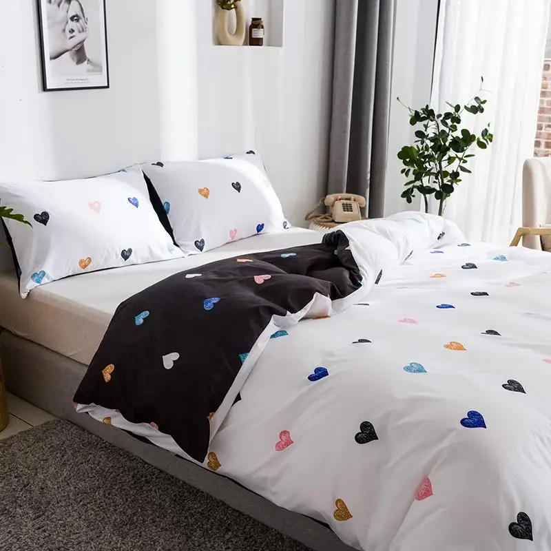 Комплект постельного белья для девочек, с пододеяльником и наволочками, размеры QueenKing, белыйчерный