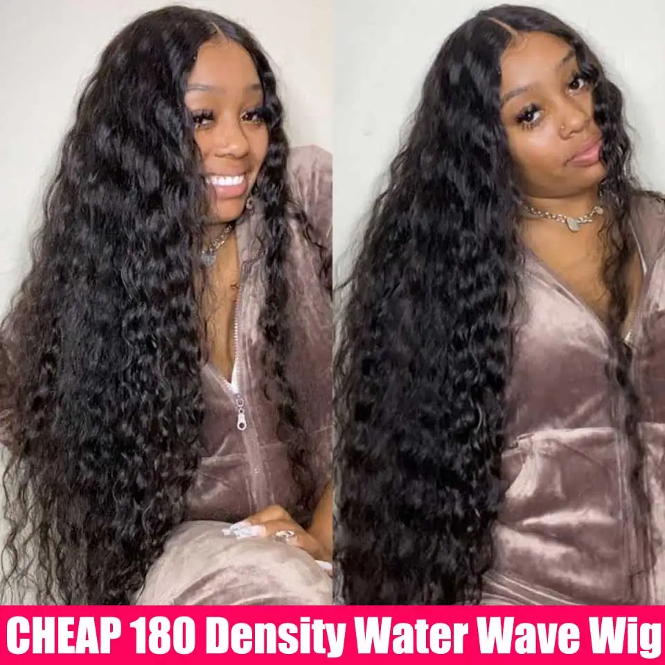 Transparent Lace Wigs Water Wave Lace Front Wig 180 Density Wet And Wavy Curly Lace Front Human Hair Wigs T Part Water Wave Wig