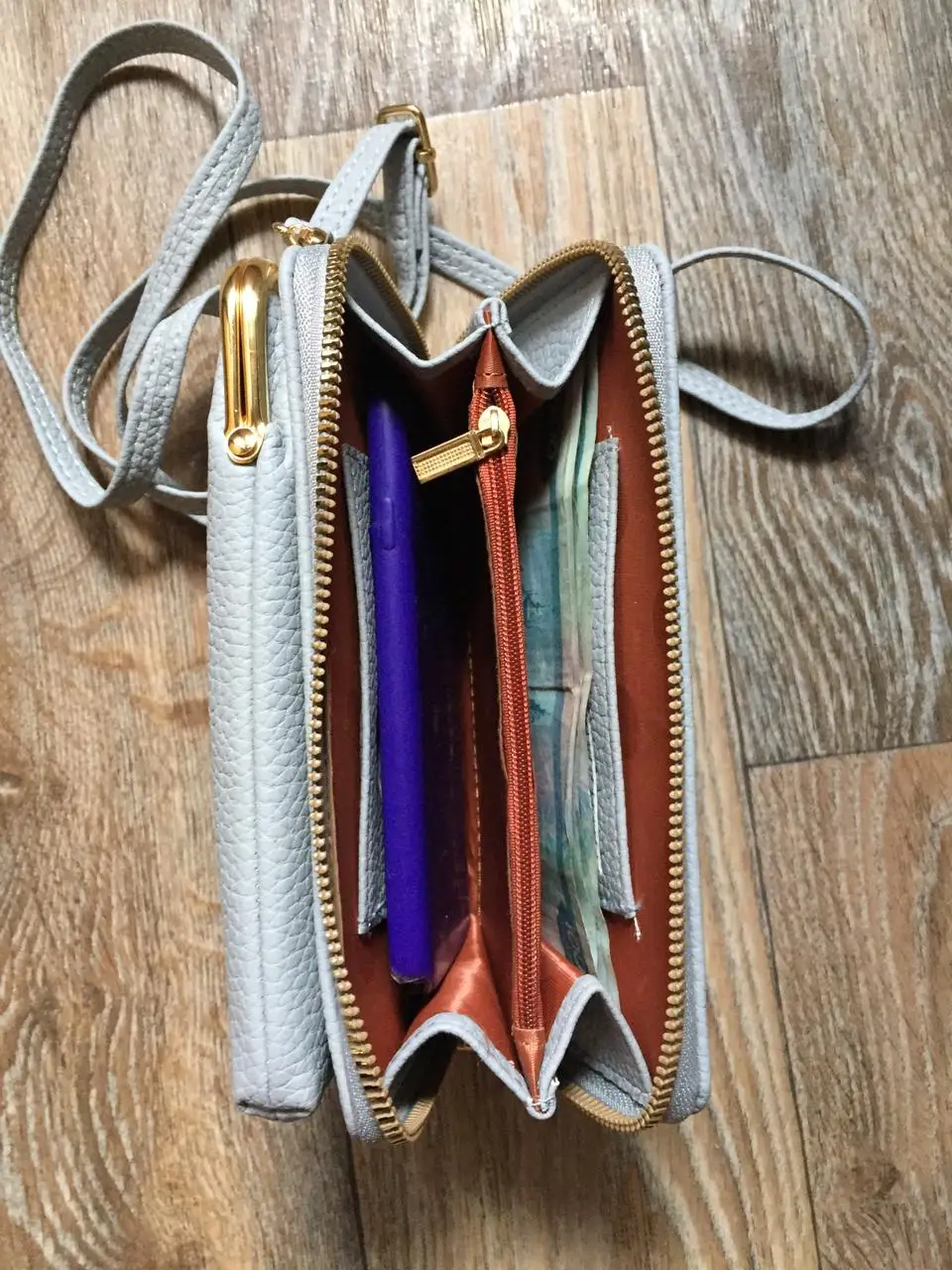не понимаю - нравится мне или нет. сумочка как на фото, сделано аккуратно, поэтому оценку не снижаю. но не нравятся буквы на передней панели - они пропечатаны плохо, буду обтирать их ацетоном. и не влазит мой телефон Xiaomi 10 - в отделение на застёжке, входит только в отделение кошелька. но наверное я должна была сама замерять телефон, и проверить перед покупкой замочек металлический - пока открывается не очень хорошо, надеюсь ращработается. в общем - таскать буду.