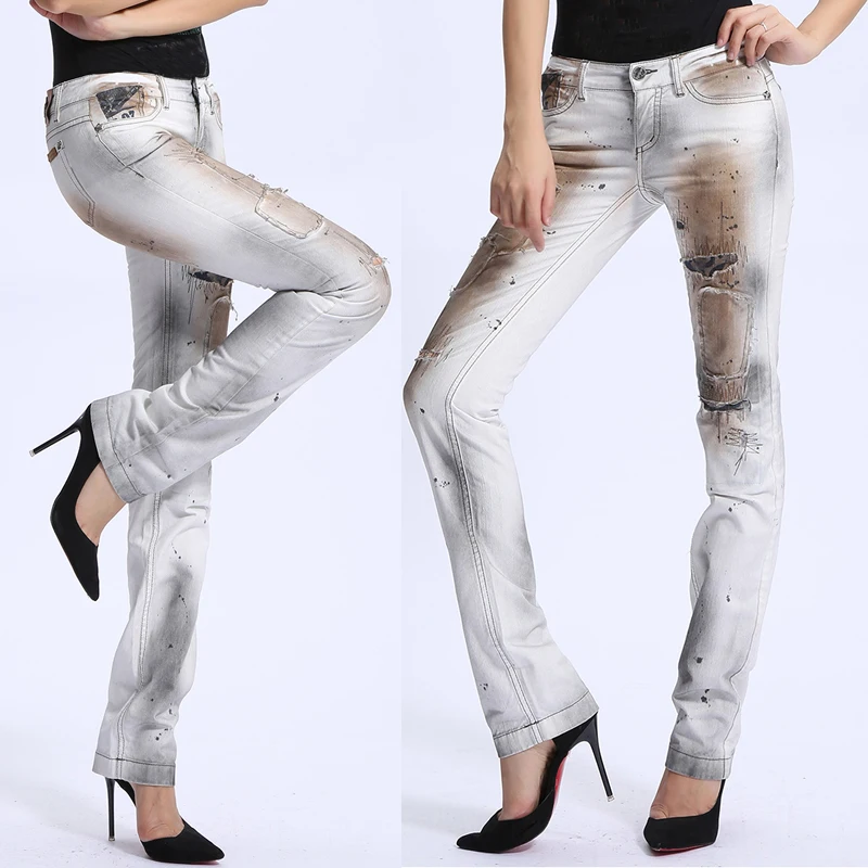 Винтажные повседневные женские рваные джинсовые брюки с принтом и вышивкой, женские Стрейчевые джинсовые брюки 2021