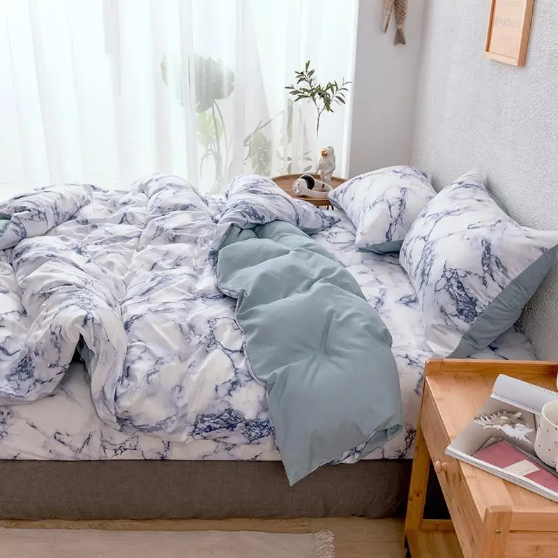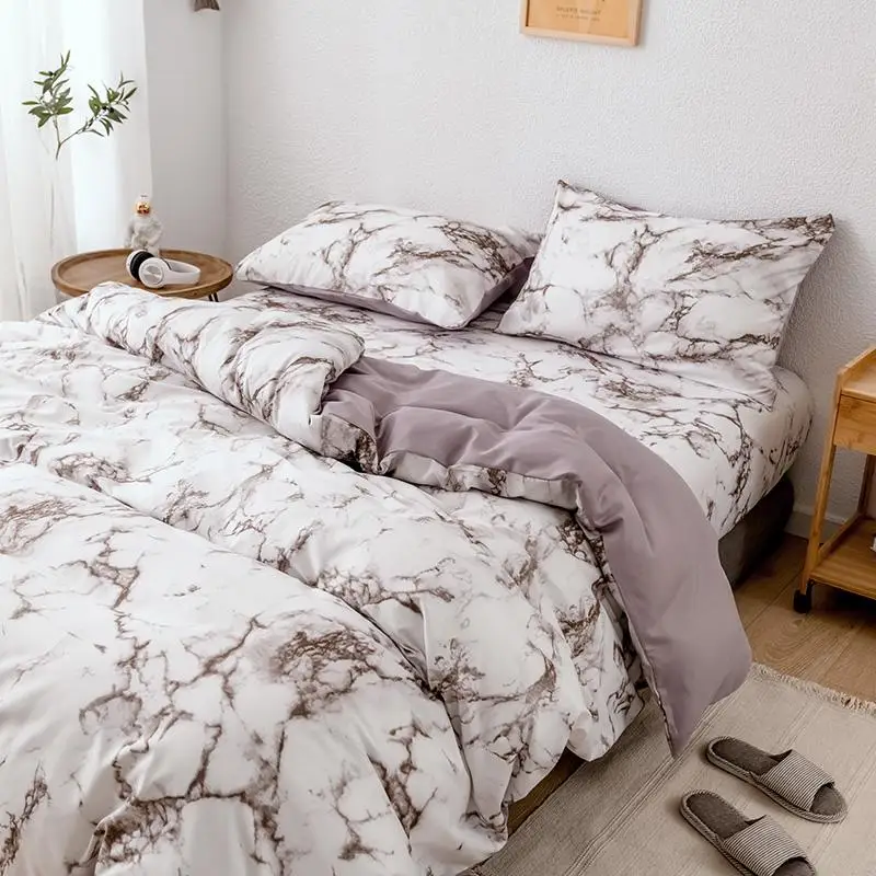 Комплект постельного белья, мягкое, с пододеяльником и наволочками, Мраморный Рисунок