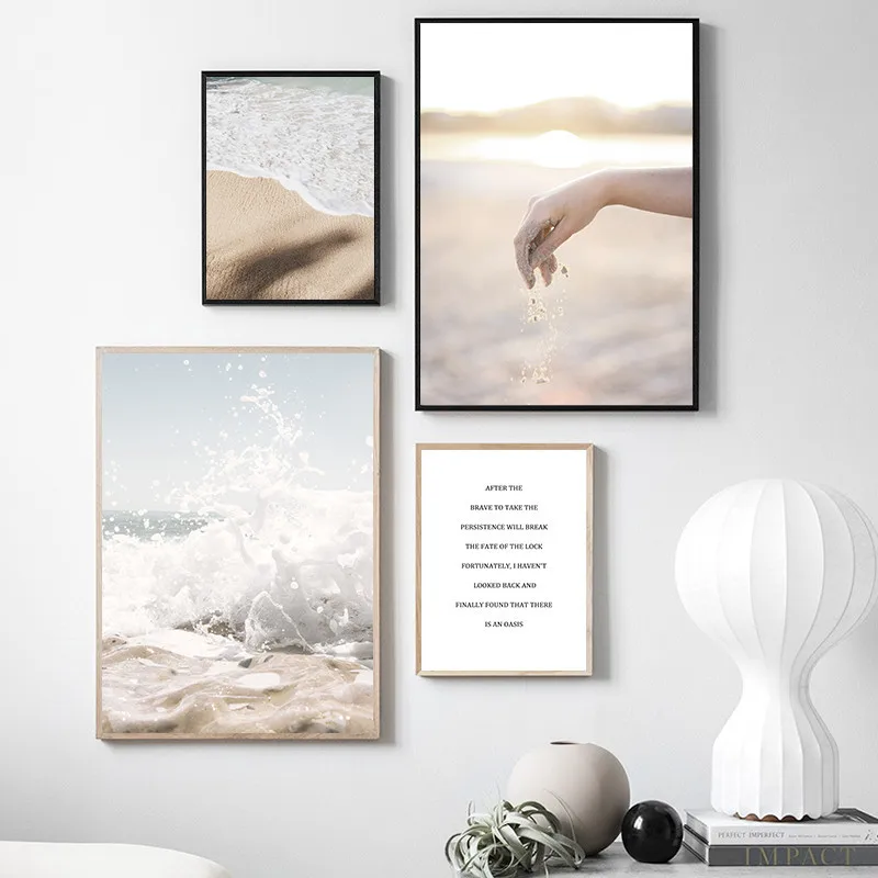 Морские волны пляж цветок девушка ручная настенная Картина на холсте постеры скандинавский песок печать стены картины для гостиной Декор TB131