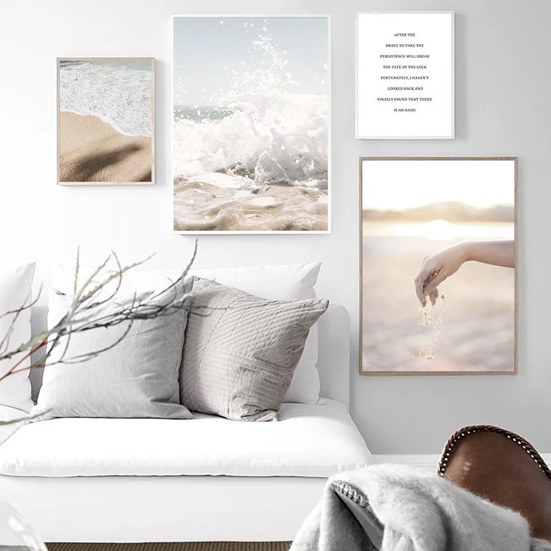 Картина в скандинавском стиле с изображением синего пляжа, серфинга...