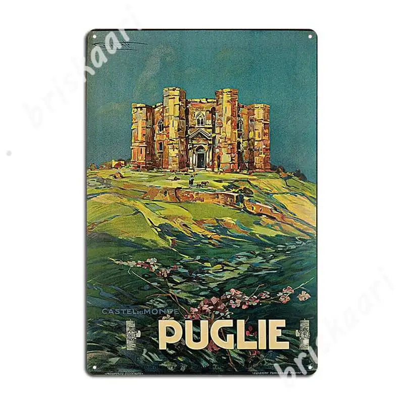 Винтажные Дорожные Металлические знаки с изображением итальянского замка из пуглии для клувечерние в гостиную творческая роспись оловянные плакаты с вывесками