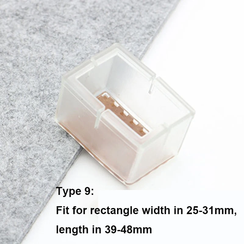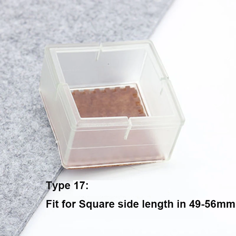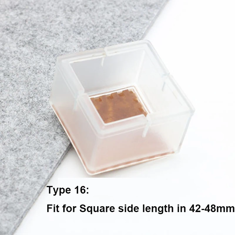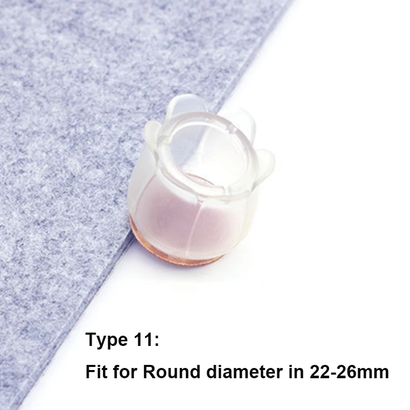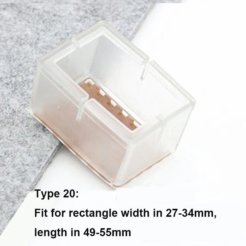 2. Пожалуйста, выберите правильный размер для ваших ножек мебели (20 стилей на ваш выбор);2. Защита для ног стула Цвет: прозрачный; Форма протектора для ног стола: круглая или квадратная;