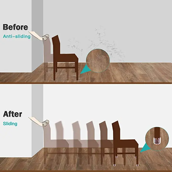 4. Защищает ножки стула, стола и пола от повреждений; Нескользящая Нижняя накладка предотвращает появление царапин;