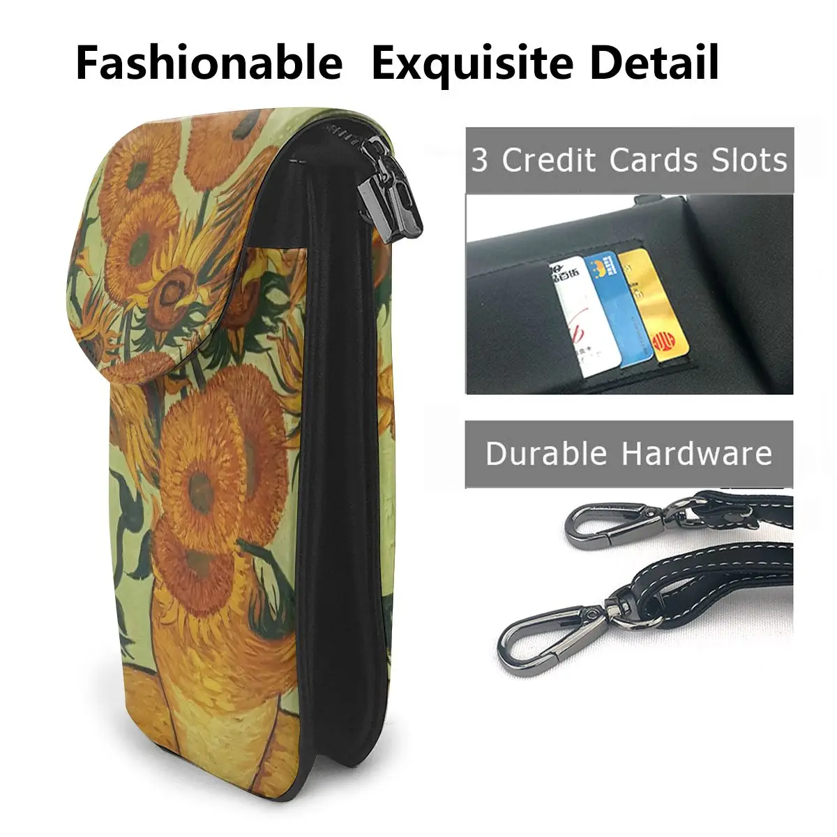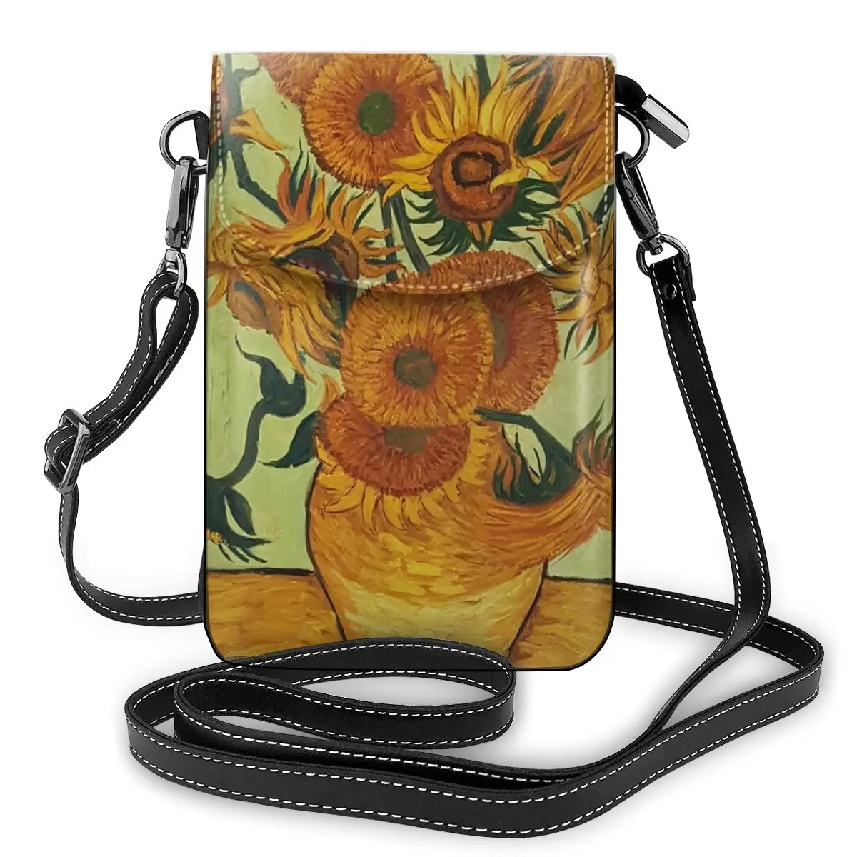 Женская сумочка из кошелек с рисунками подсолнуха кожи с ремешком на плечо