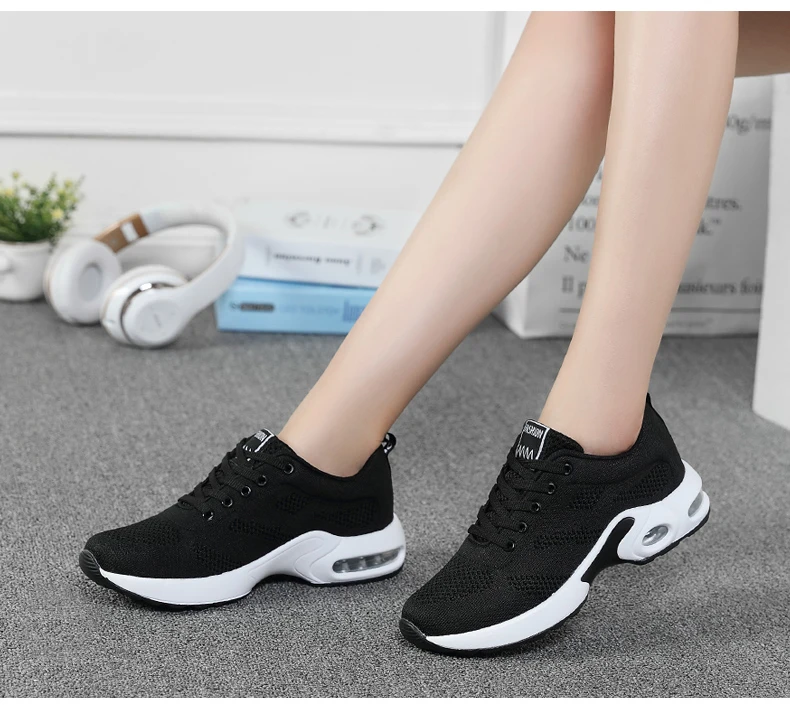 Женские кроссовки на платформе, дышащие, легкие, черные