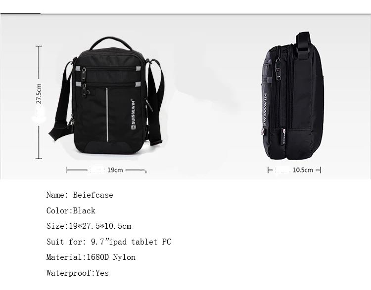 Швейцарская сумка через плечо, удобный портфель, маленькая сумка-мессенджер для планшетов 9,7 дюйма 11 дюймов и документов, Мужская черная сумка через плечо