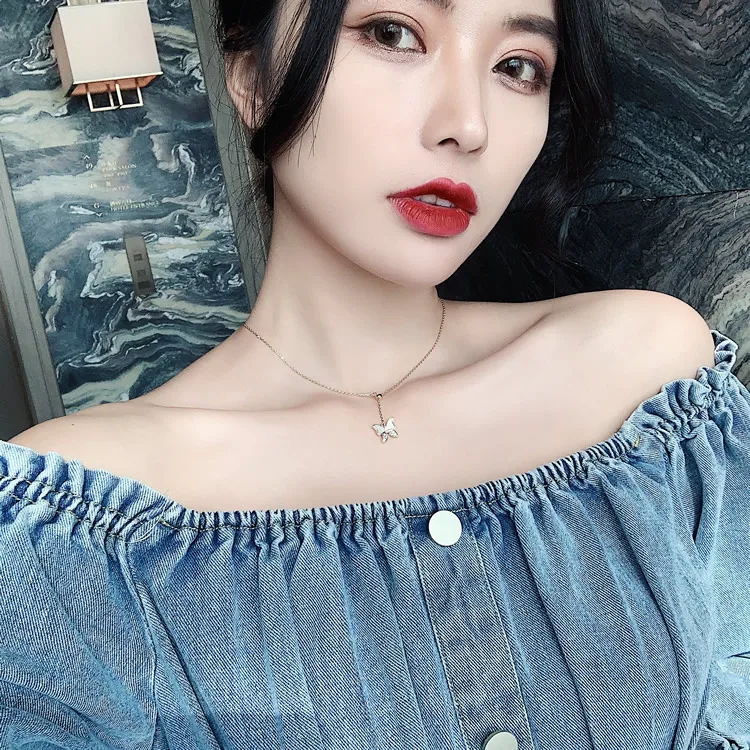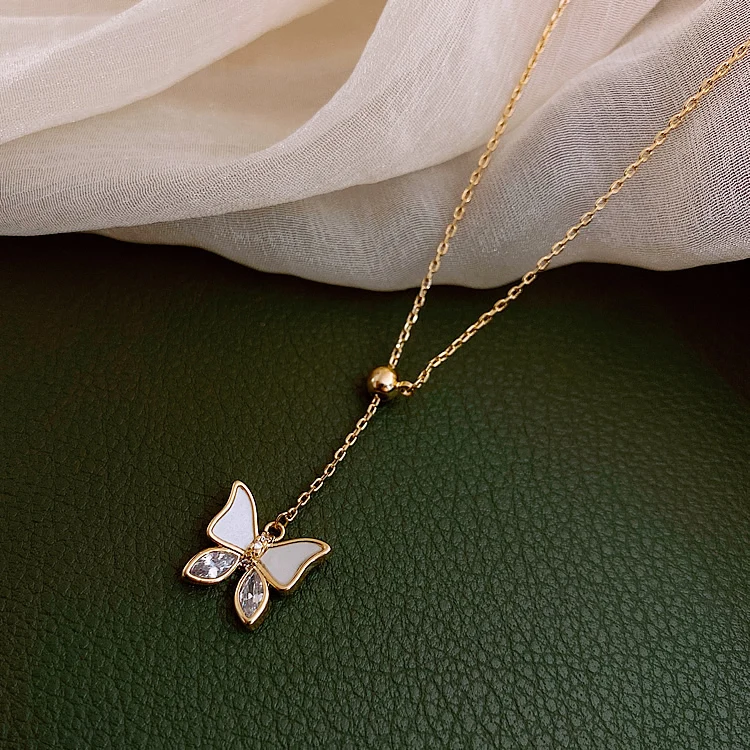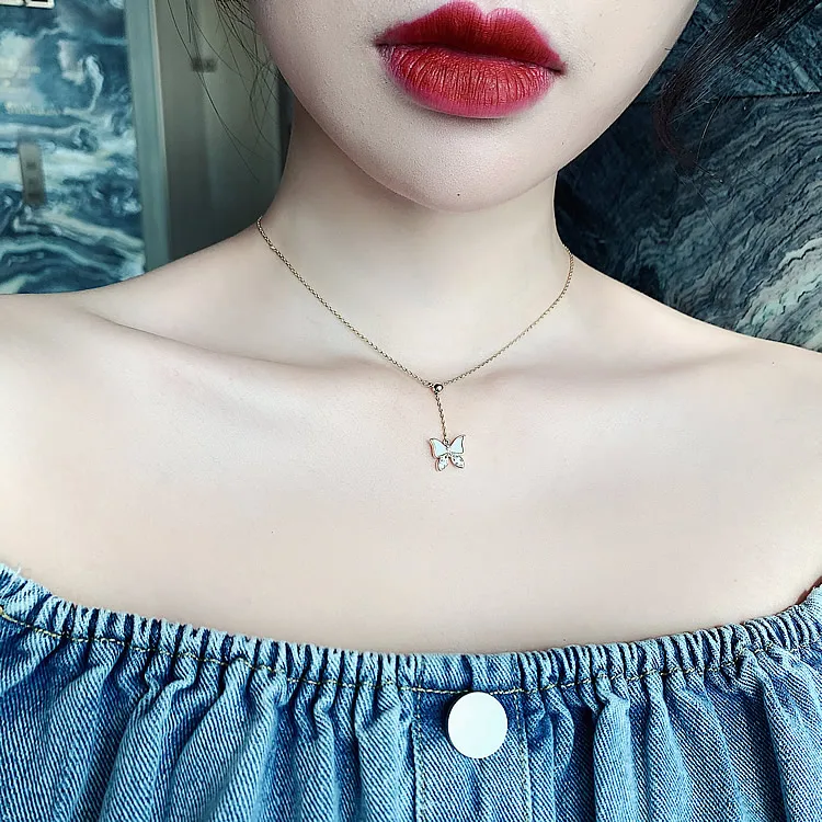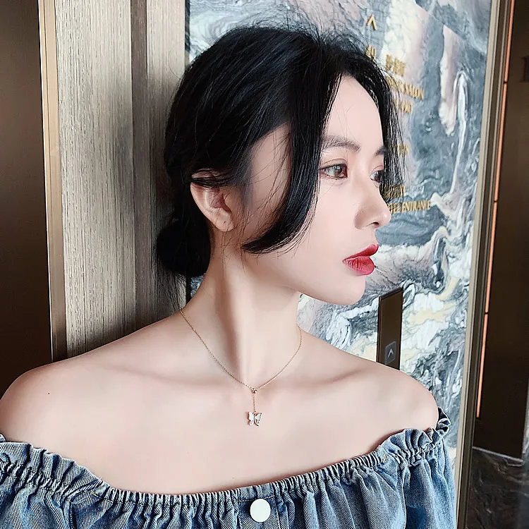 Элегантная белая бабочка короткое ожерелье с подвеской для женщин, в Корейском стиле, модное ювелирное изделие для девочек; Пикантная стильная цепочка с кулоном, вечерние роскошное ожерелье