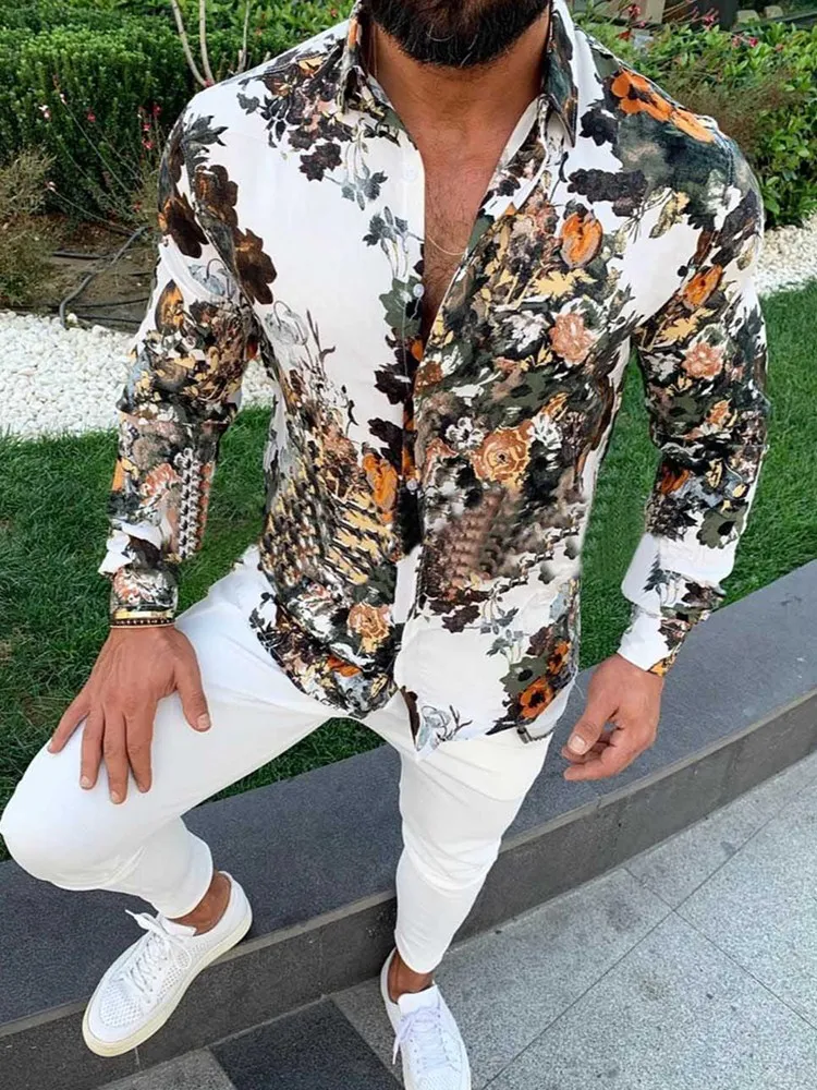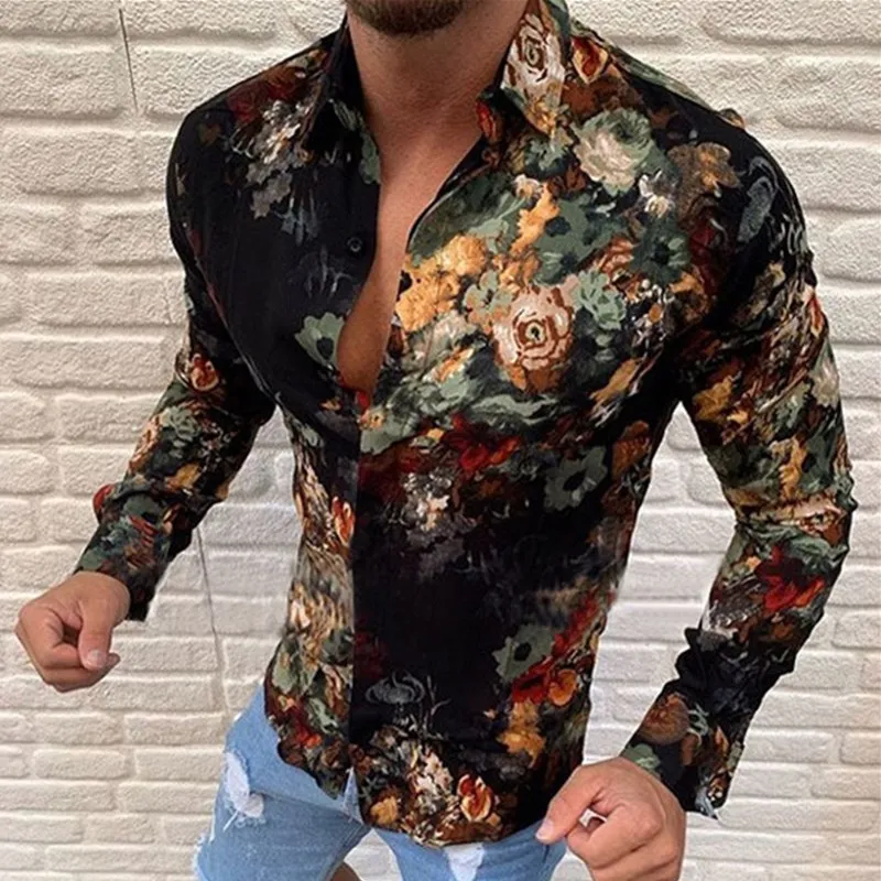 Мужская в национальном стиле, рубашка с длинными рукавами Гавайская...