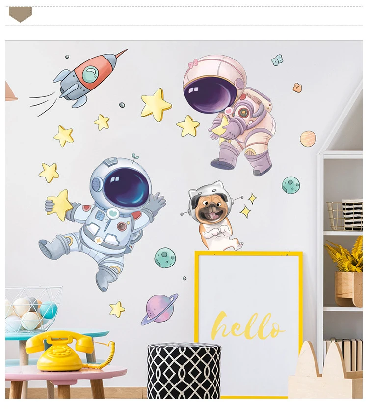 Милые настенные наклейки с космосом и астронавтом для детей, Настенный декор для детской комнаты, съемные виниловые наклейки из ПВХ, наклейки для спальни, украшение для дома