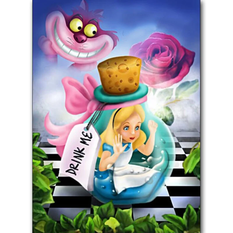 Полноразмернаякруглая Алмазная 5D картина сделай сам, вышивка крестиком, Алиса в стране чудес, алмазная вышивка, мозаика, подарок