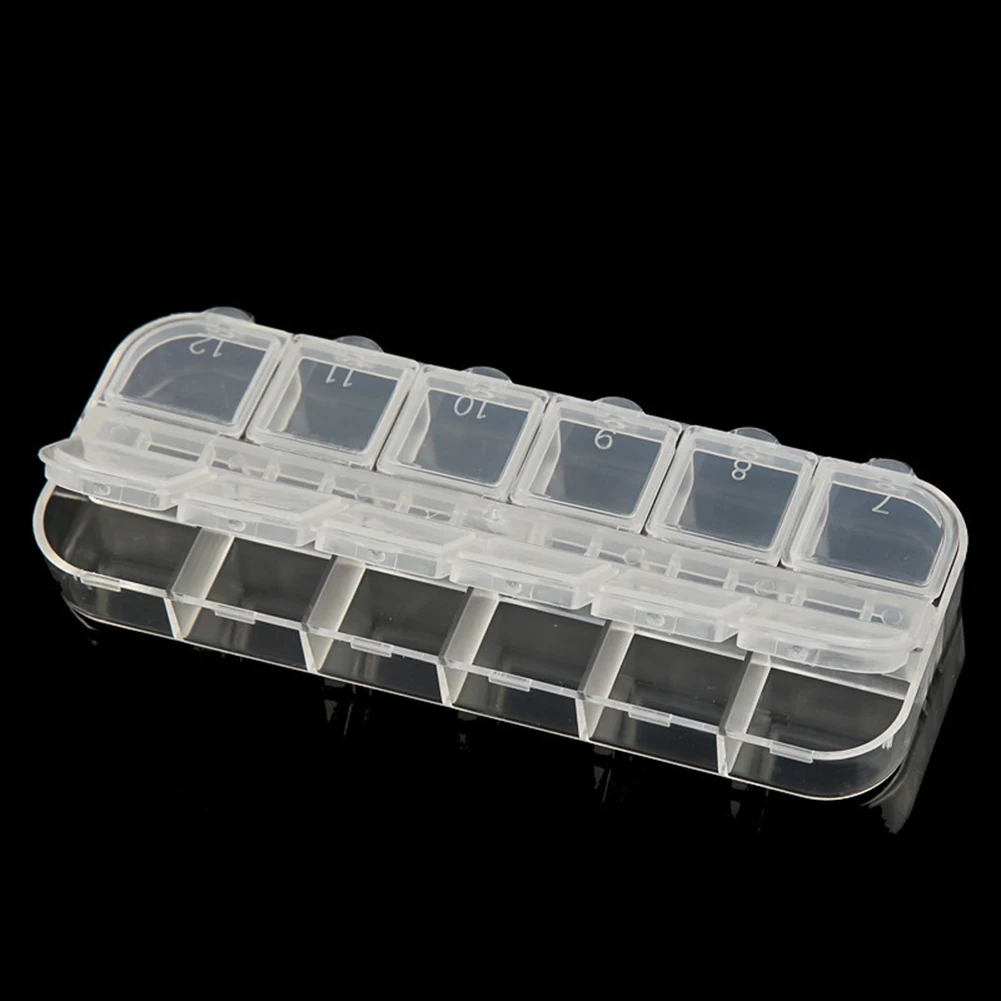 12 решетчатых прозрачных пластиковых бусин держатель коробка для хранения для дизайна ногтей ювелирные изделия Дисплей Органайзер чехол Маникюр DIY аксессуары