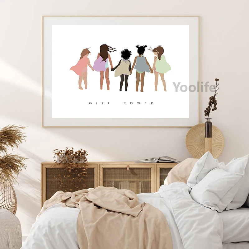 Плакат с девушкой мощностью, феминистская иллюстрация, художественные принты, Вдохновляющие девушки, современное настенное искусство, холст, живопись, картина, Женский Декор для комнаты