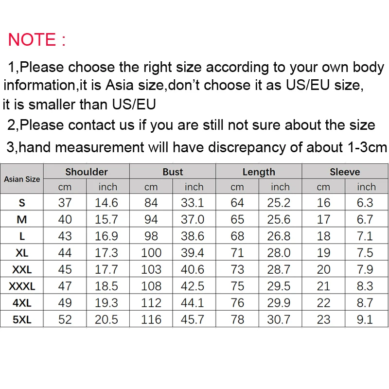SizeS,M,L,XL,XXL,XXXL,4XL,5XL