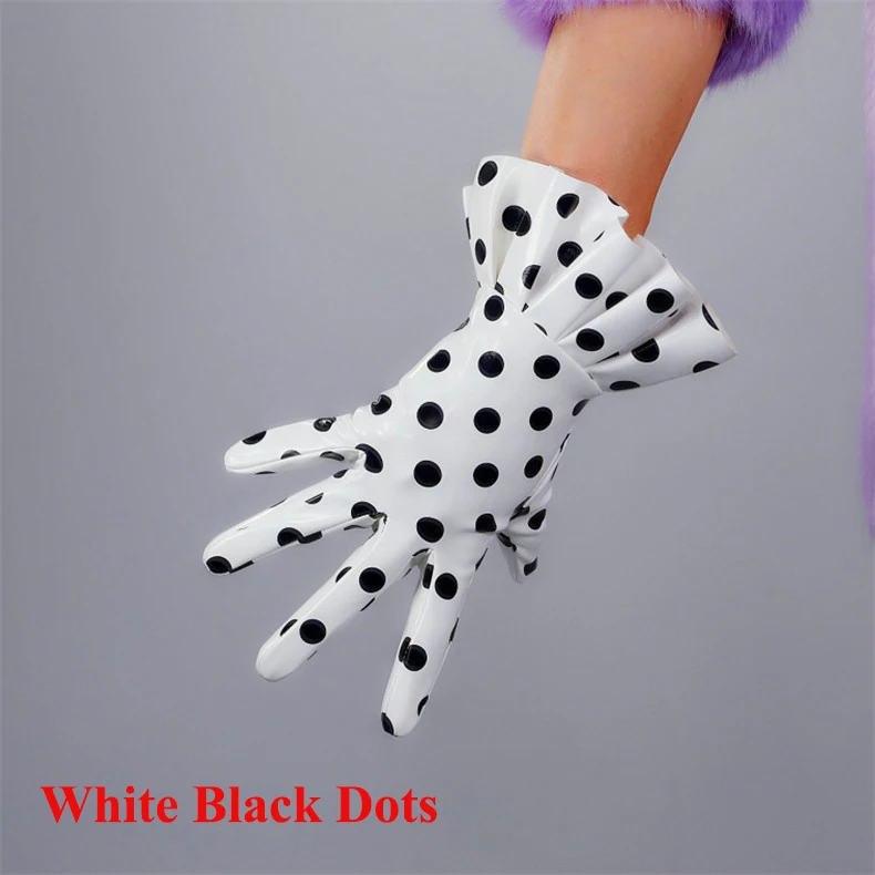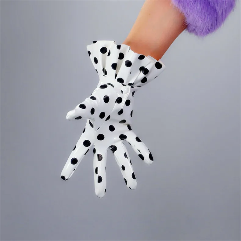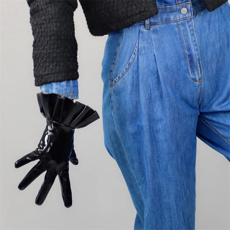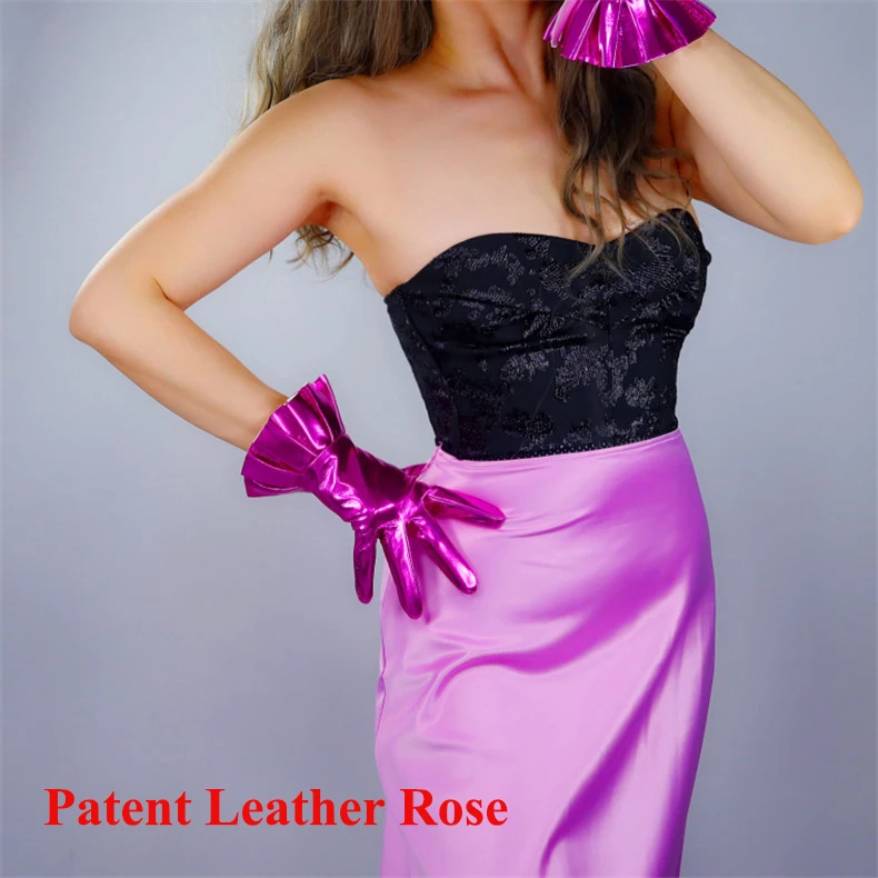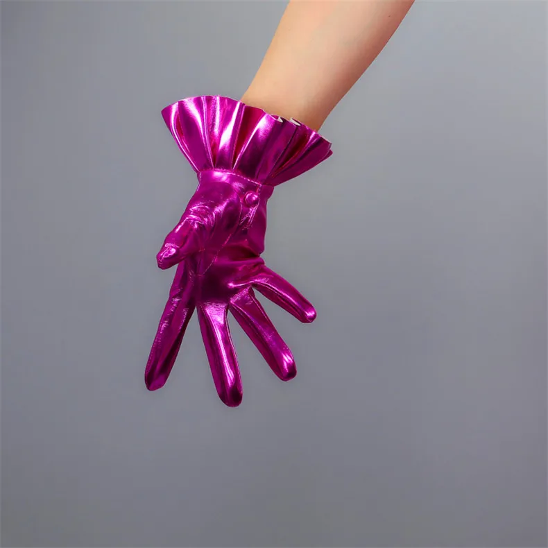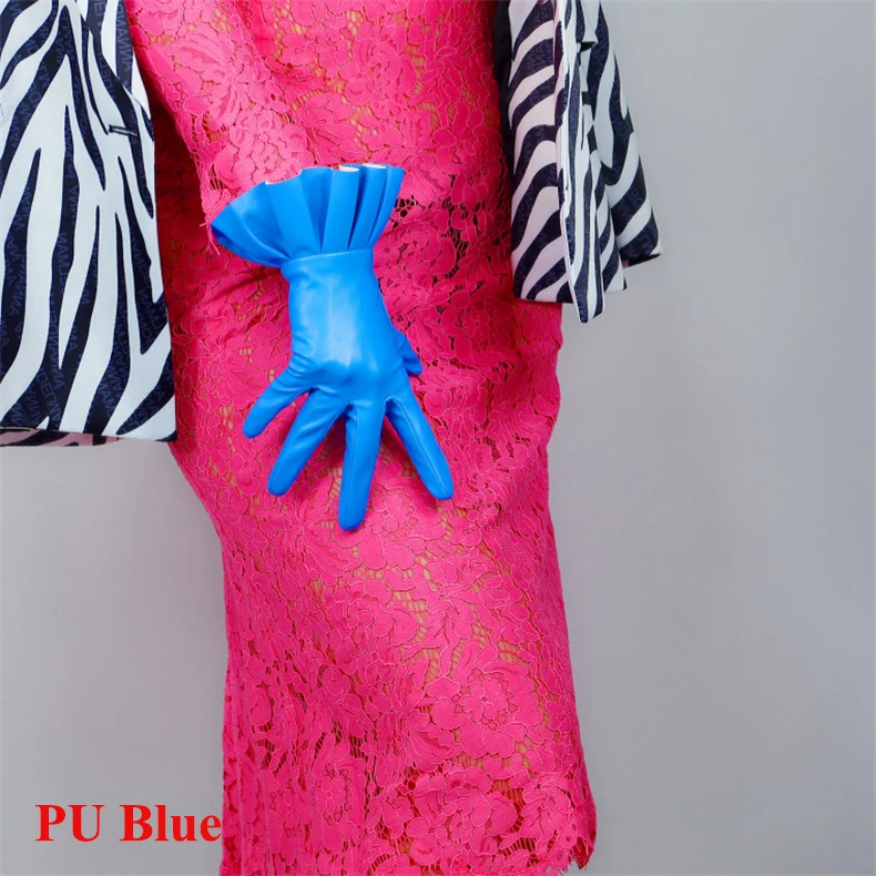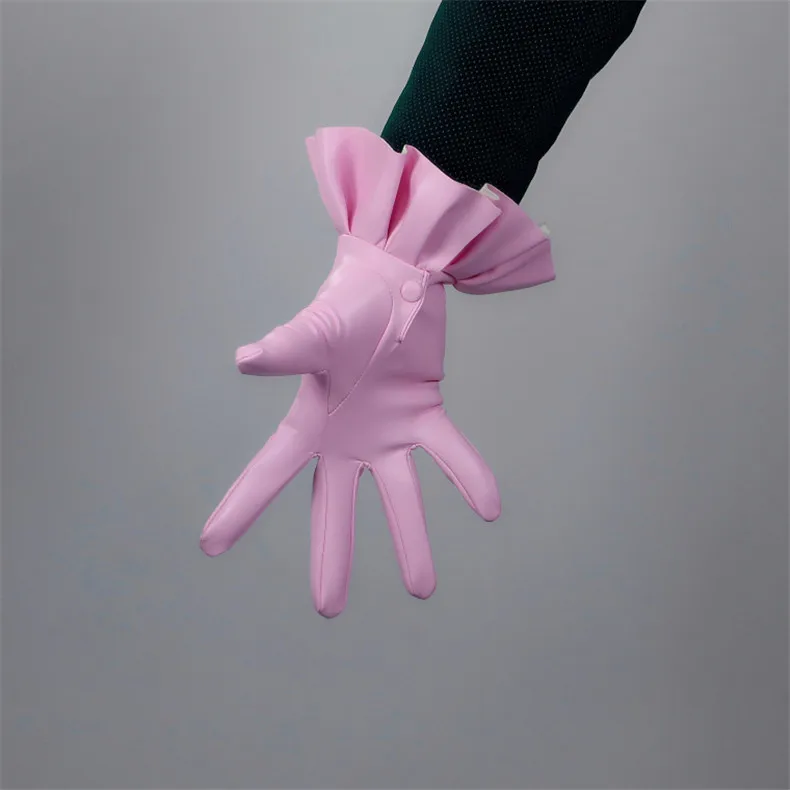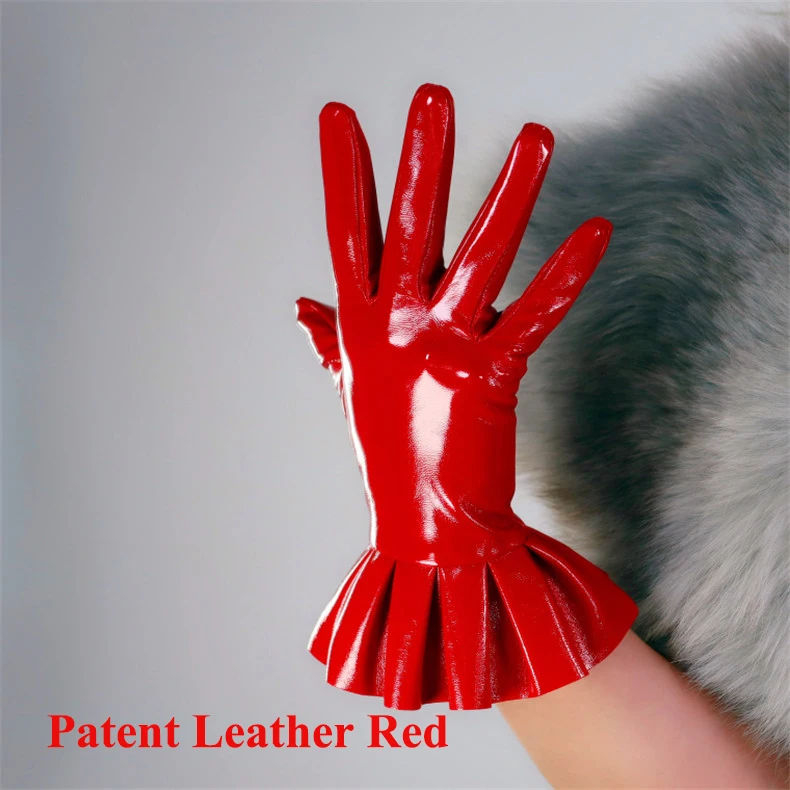 Новинка, женские перчатки из искусственной кожи, 25 см, короткие, искусственная кожа, Волнистые складки, на запястье, кружевные, женские кожаные перчатки, WPU310