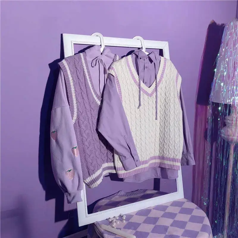 Свитшот женский в стиле Харадзюку, Свободный Топ с вышивкой клубники, лавандового и фиолетового цветов, с длинными рукавами, в стиле оверсайз, Осень-зима