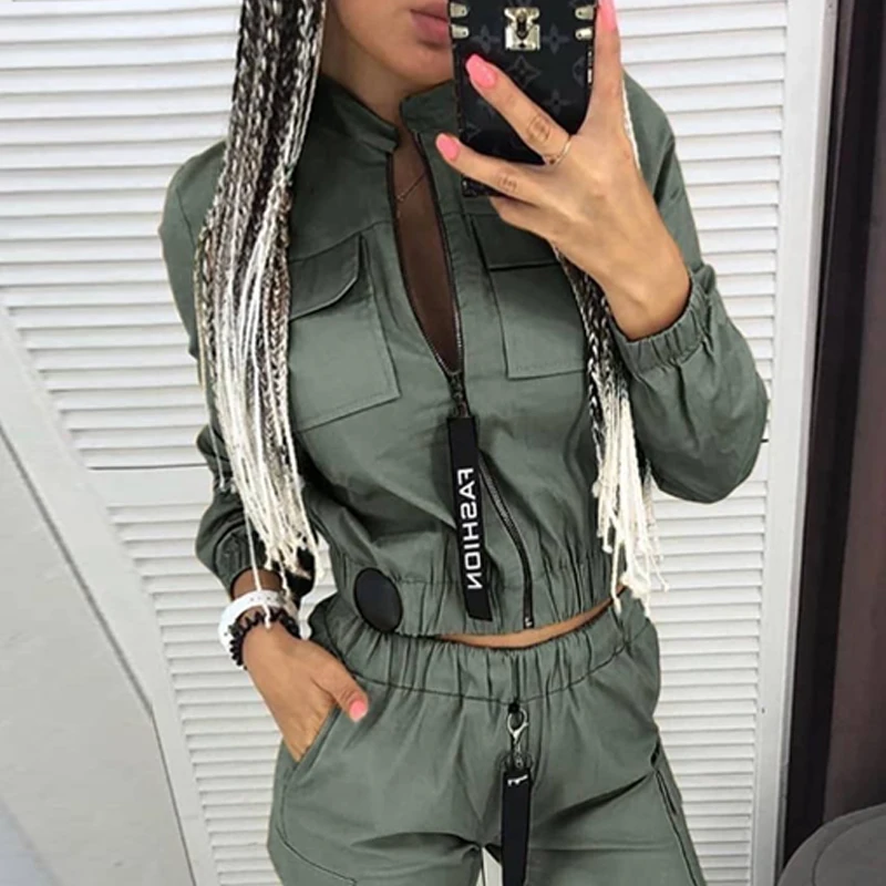 Комплект Спортивный женский из двух предметов, Топ с длинным рукавом на молнии, джоггеры, брюки, уличная одежда, французский спортивный костюм, повседневные джоггеры