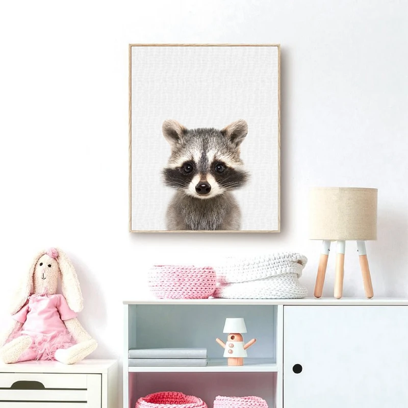 Детская одежда с животными енота Печать холст Современная фотография лесной Животные Детская Wall Art Холст Картина детской комнаты настенный Декор