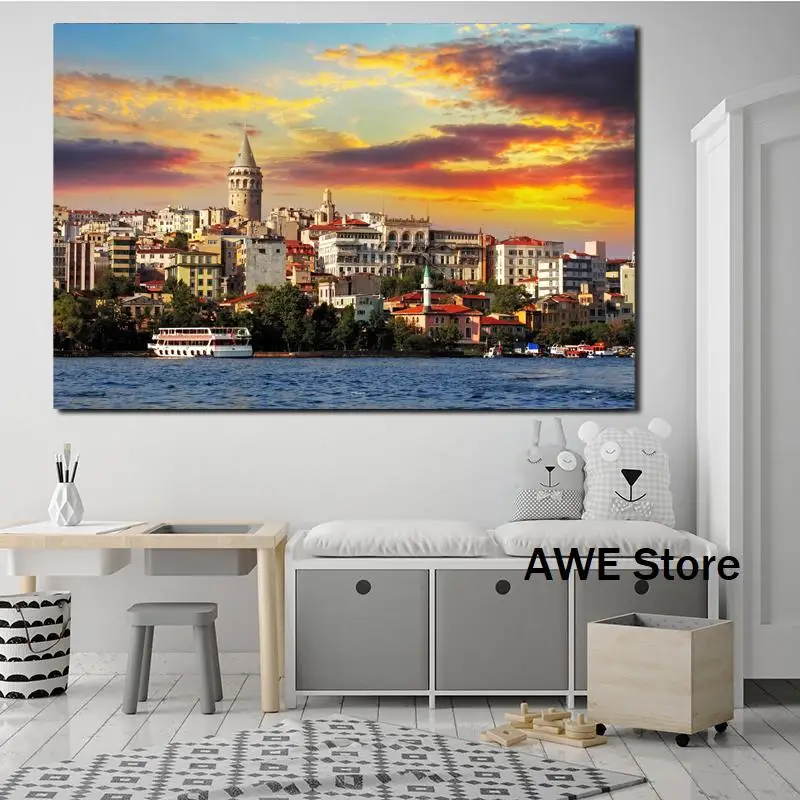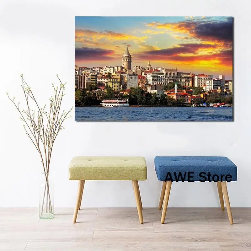 Турецкий, стамбольский морской пейзаж, городские здания, художественный постер на холсте, картина маслом, Настенная картина, печать, искусство украшения icon star icon star icon star icon star icon star