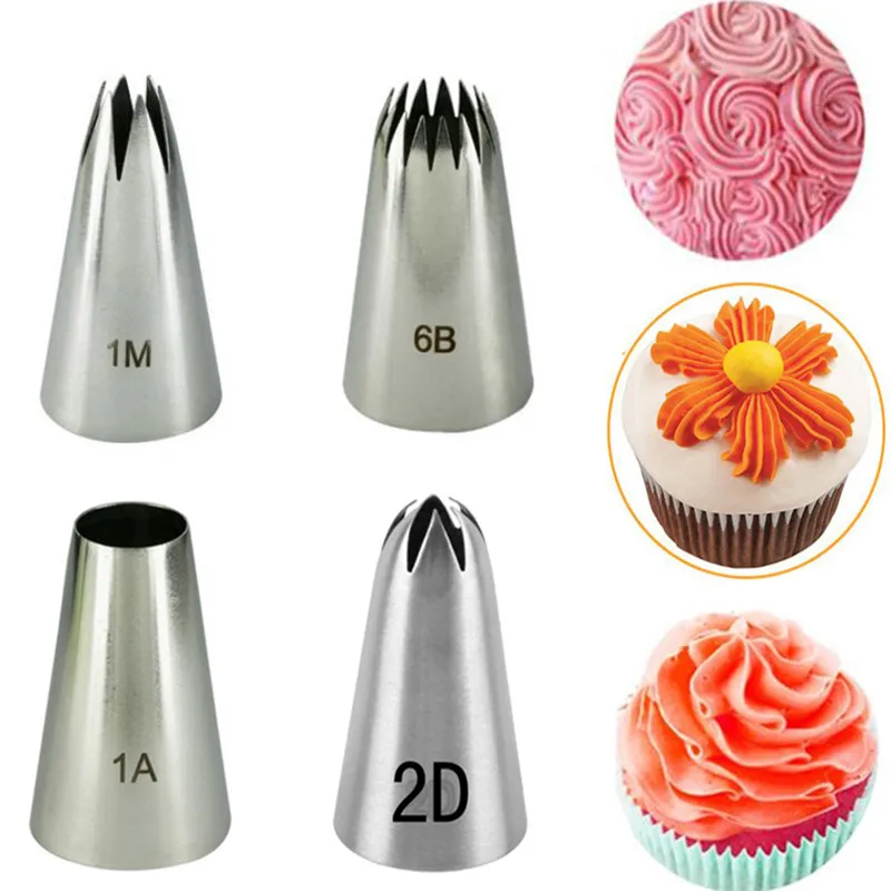 Набор кондитерских насадок из нержавеющей стали # 6B #1M # 1A # 2D, 1-4 насадки для глазирования, Кондитерские насадки для выпечки, кексов, инструменты для украшения торта