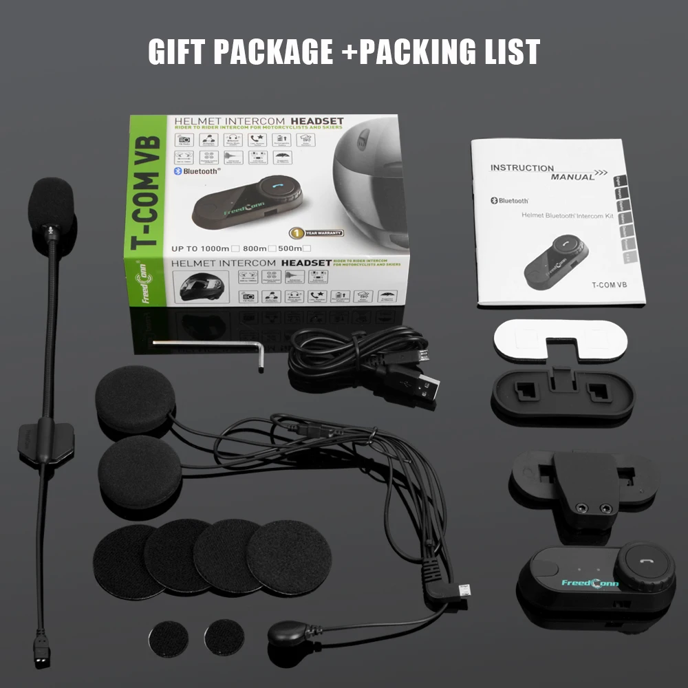 Оригинальная гарнитура FreedConn T-COM VB для мотоциклетного шлема, 800 м, переговорное устройство, мотоциклетные наушники, водонепроницаемые наушники