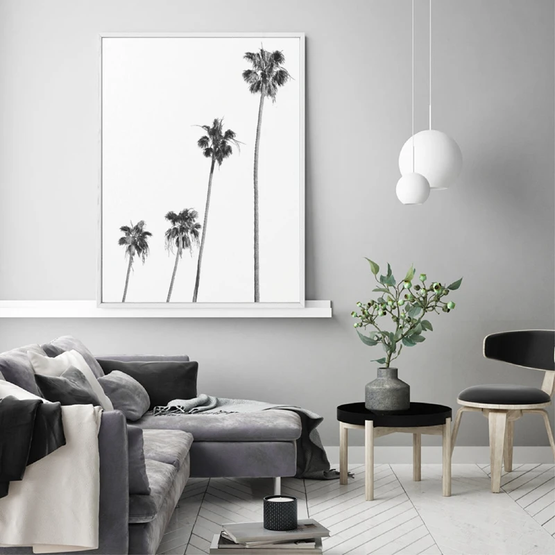Плакаты пляжные с тропическим пейзажем, настенная Картина на холсте с рисунком пальмы, пляжа, серфинга, черно-белые фотографии, домашний декор