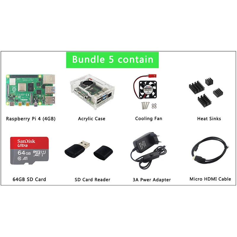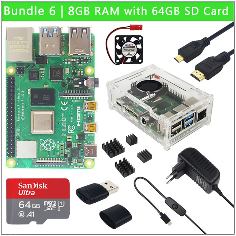 Raspberry Pi 4 Model B 2 ГБ4 ГБ8 ГБ ОЗУ + чехол + вентилятор + теплоотвод + адаптер питания + SD-карта 3264 ГБ + Кабель Micro HDMI для RPI 4B