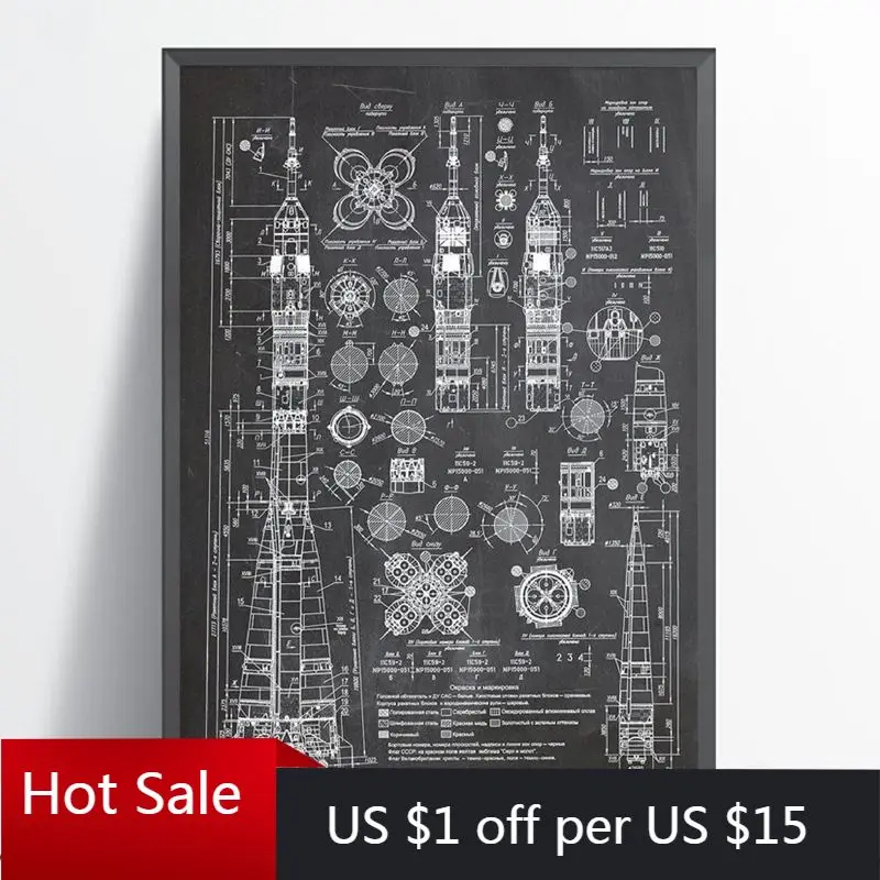 Патент на русскую ракету, настенная живопись, печать на холсте, рисунок авиации, чертеж, плакаты, космическое пространство, эстетический Декор для комнаты в стиле ретро
