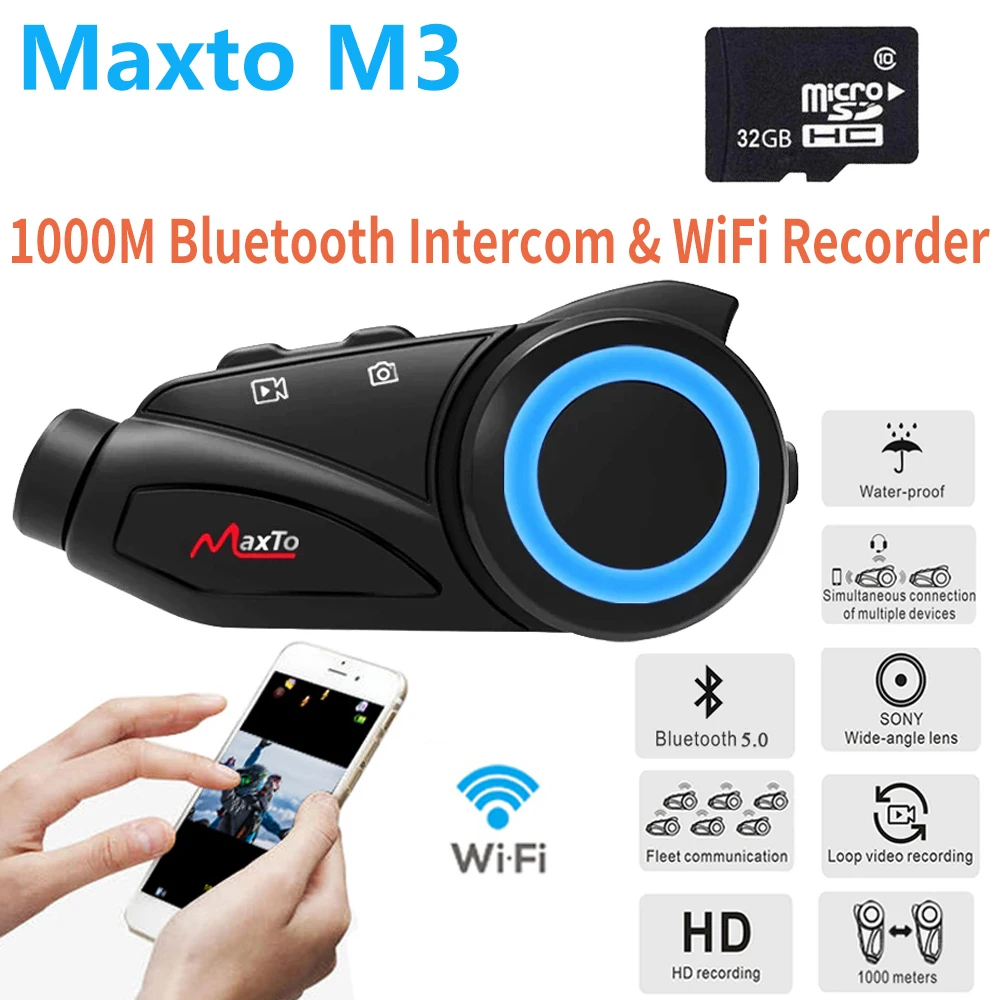 Bluetooth-гарнитура Maxto M3 мотоциклетная с поддержкой Wi-Fi, 1080P