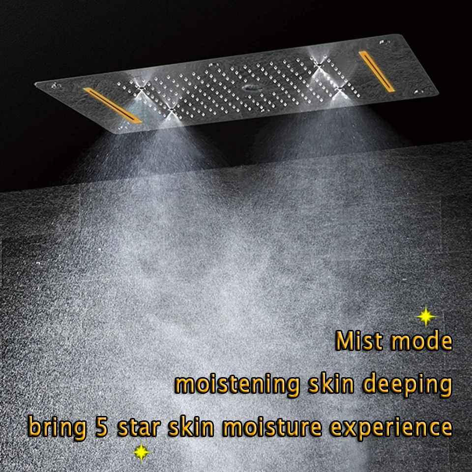 1.Описание потолочной душевой головки: она изготовлена из SUS304 и закончена зеркалом, Размер 700x380 мм, есть 4 функции в комплекте: осадки, водопад, пузырь и туман, С роскошным светодиодный свет, тестирование с 3bar давления воды, поток отработавших газов, заключаются в следующем: тумана: 9L/M; Дождя: 15L/M; Водопад: 15L/M; Пузырь: 15L/м; Он был встроен в потолок, когда мы устанавливали его, размер отверстия потолка 665*345 мм. Напряжение питания, используемое для душевой головки, составляет 90 ~ 260VAC.