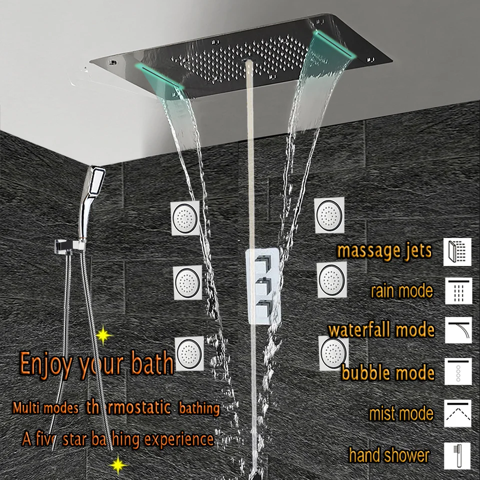 Мульти-Функция встраиваемые термостатический душевые Системы с рифленой подошвой в хорошем качестве клапан Concea светодиодный Светодиодный Потолочный Душ гидромассажем