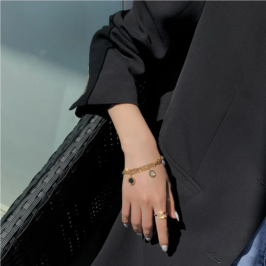 Браслеты-цепочки из нержавеющей стали 316L для женщин, двухслойные круглые и толстые ювелирные украшения из высококлассных черных и белых ракушек, 2021