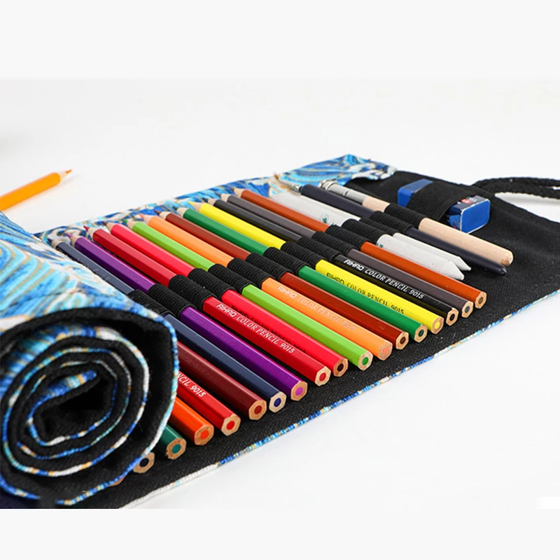Чехол для карандашей с 72 отверстиями, школьные принадлежности, чехол для художественных ручек, студенческие рулонные кисти для макияжа, складские принадлежности