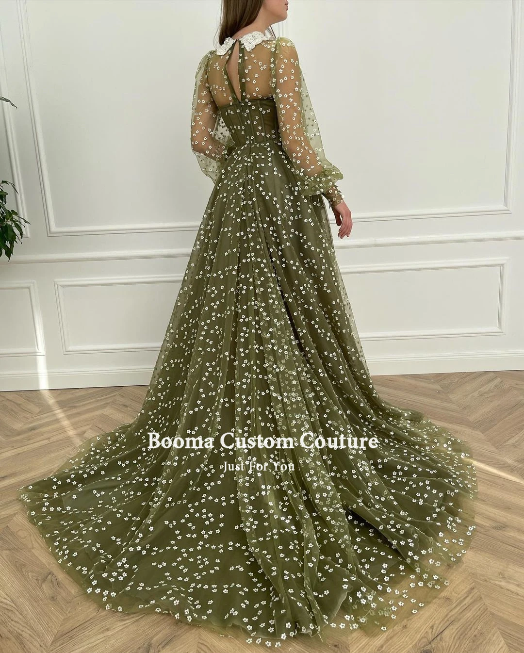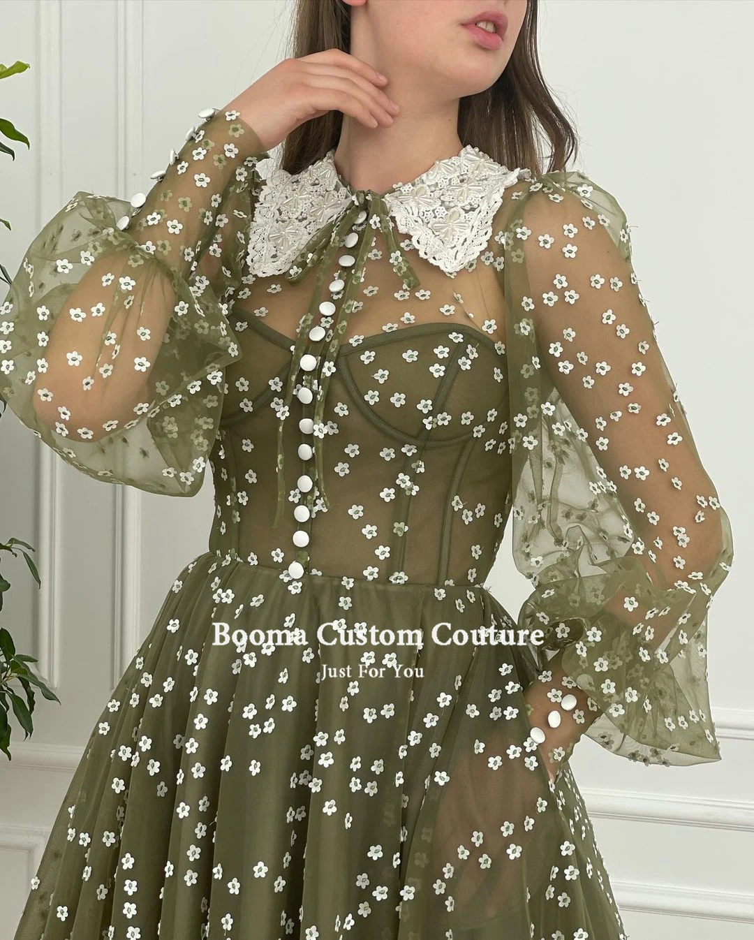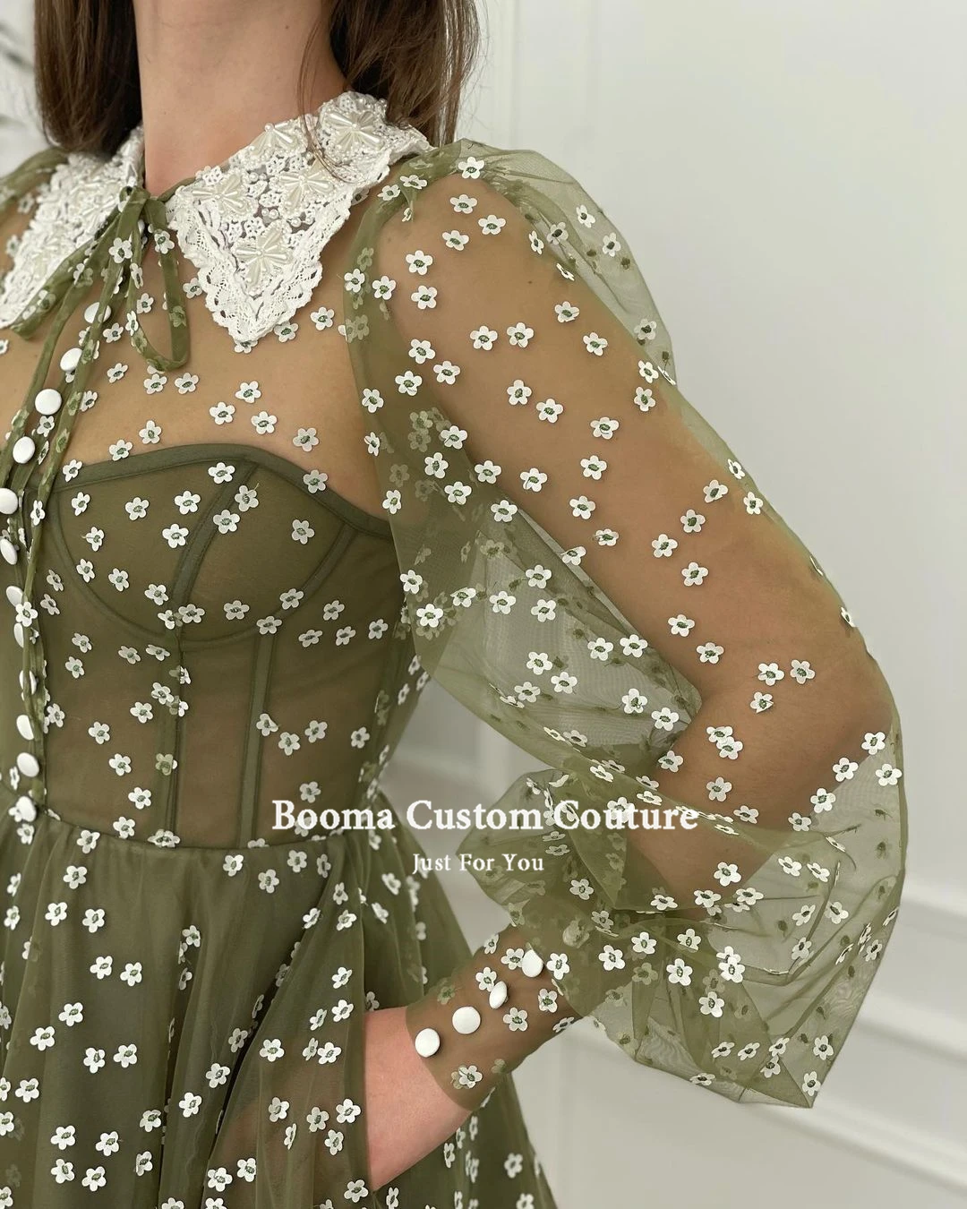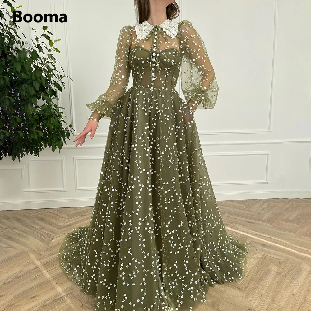 Женское ТРАПЕЦИЕВИДНОЕ ПЛАТЬЕ НА ПУГОВИЦАХ Booma, зеленое фатиновое платье с длинными рукавами и карманами для выпускного вечера, 2022