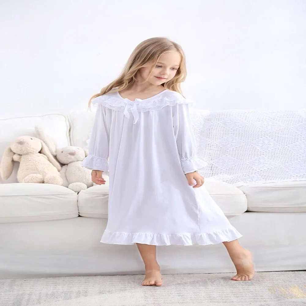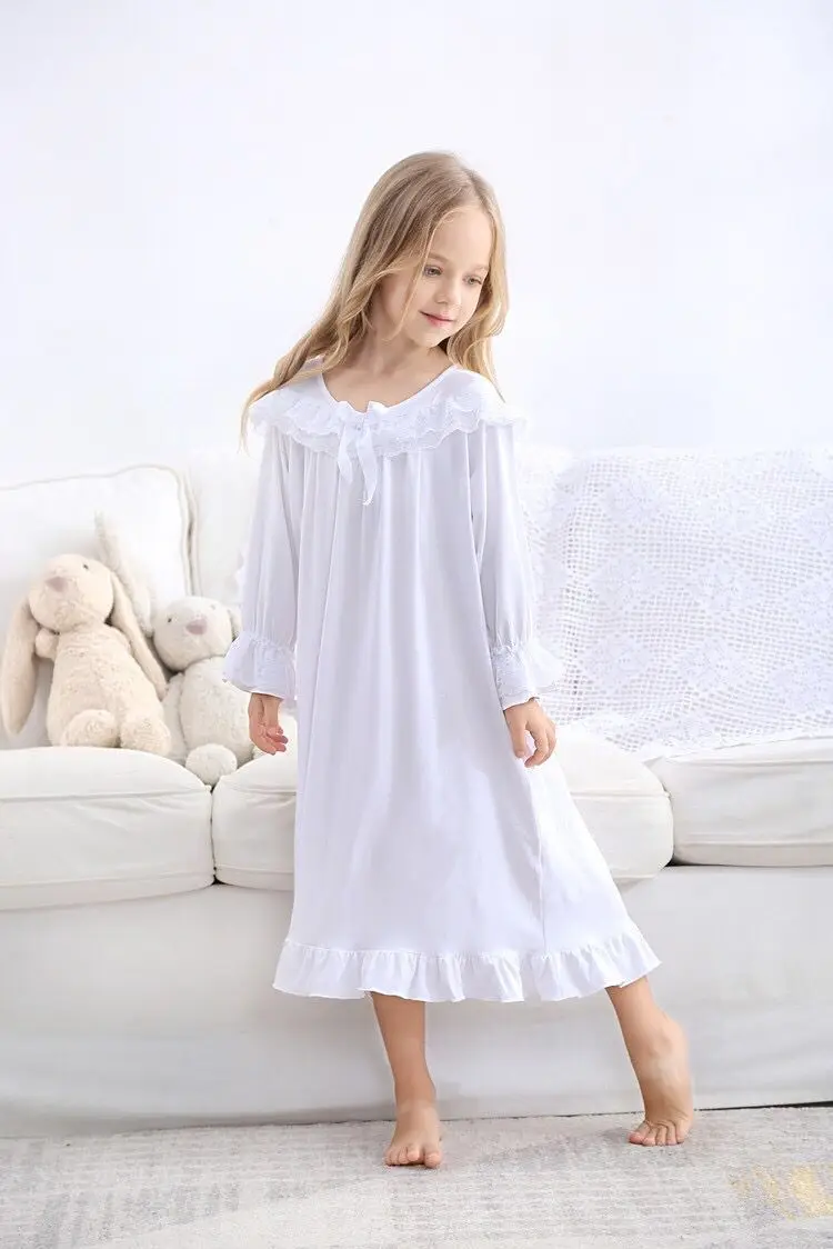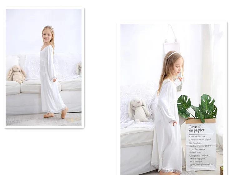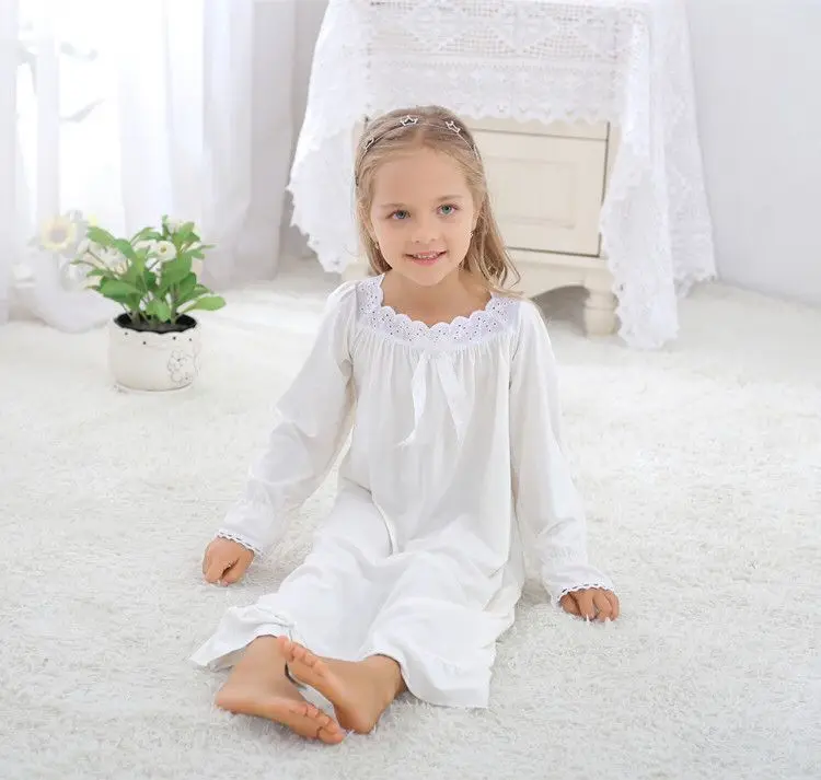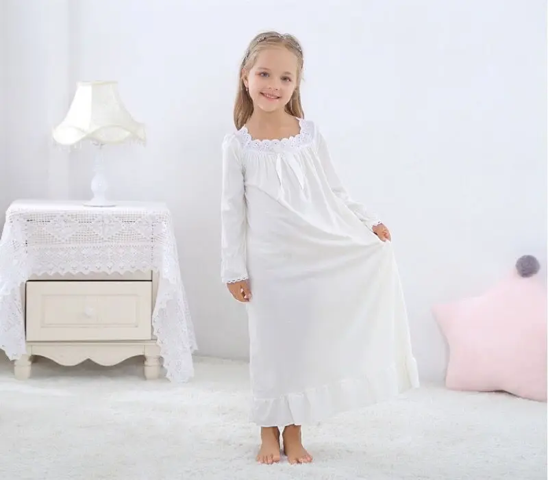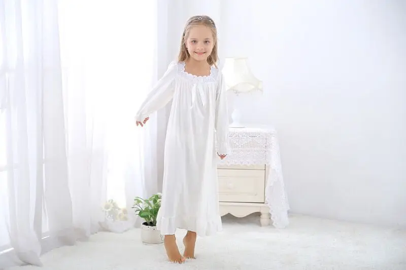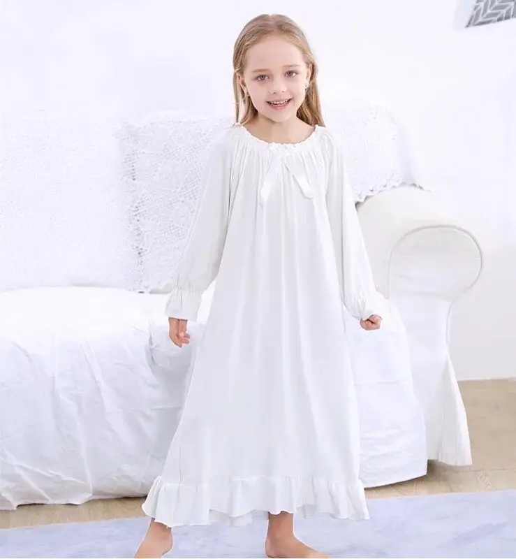 Осенняя ночная рубашка для девочек, белая хлопковая длинная ночная ...