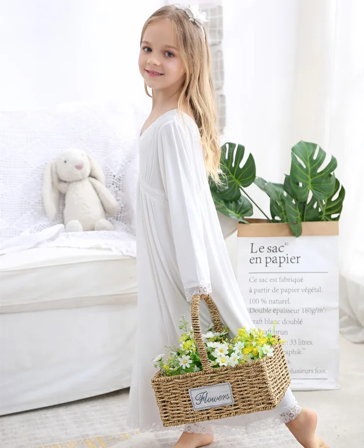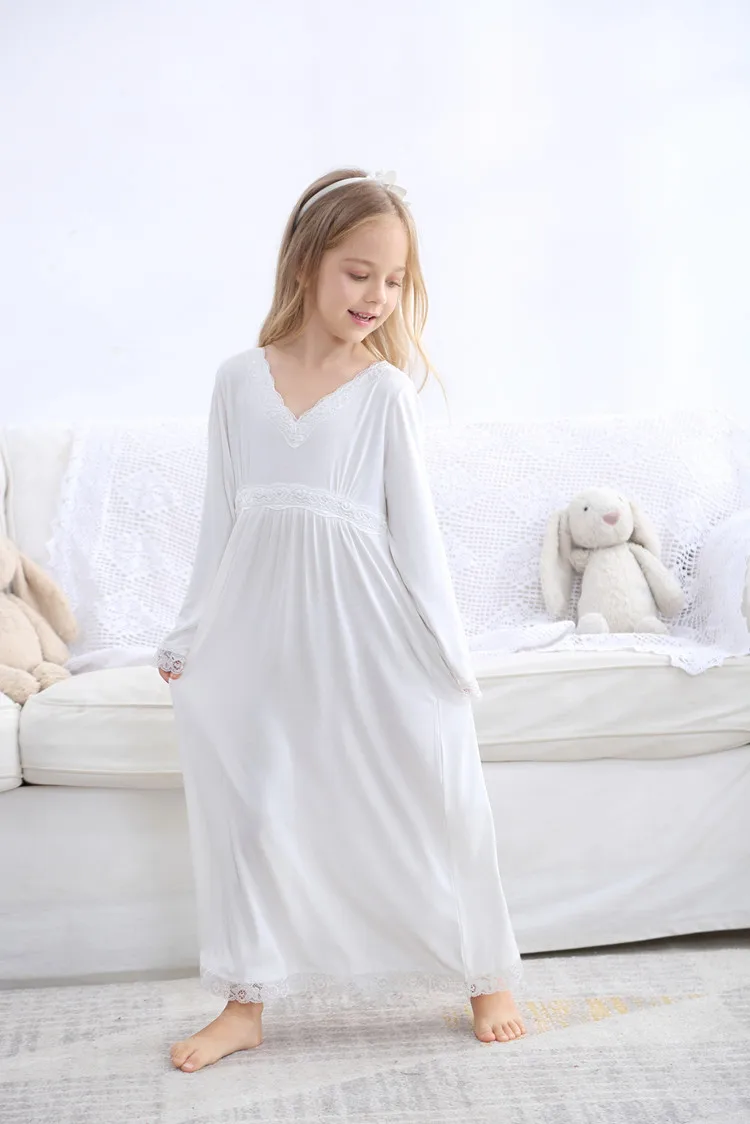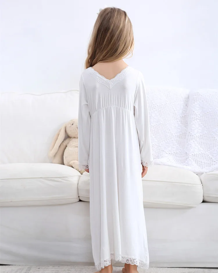 Пижама с длинным рукавом для девочек, кружевная, мягкая, винтажная