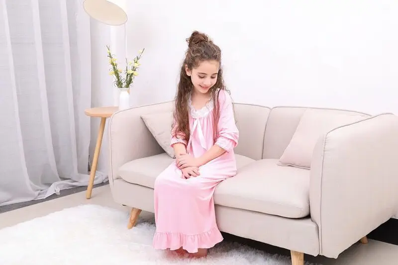Детская ночная рубашка Весна-Осень длинное платье принцессы ночная ...
