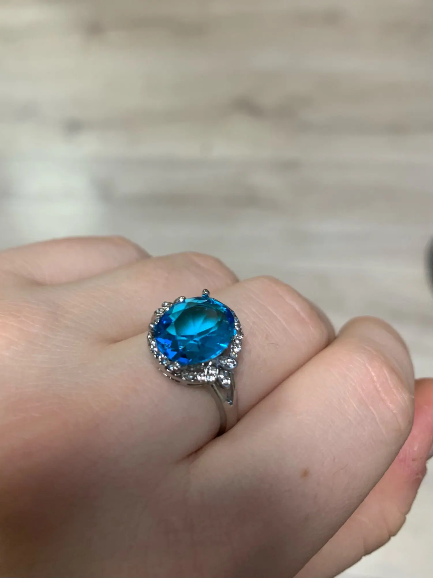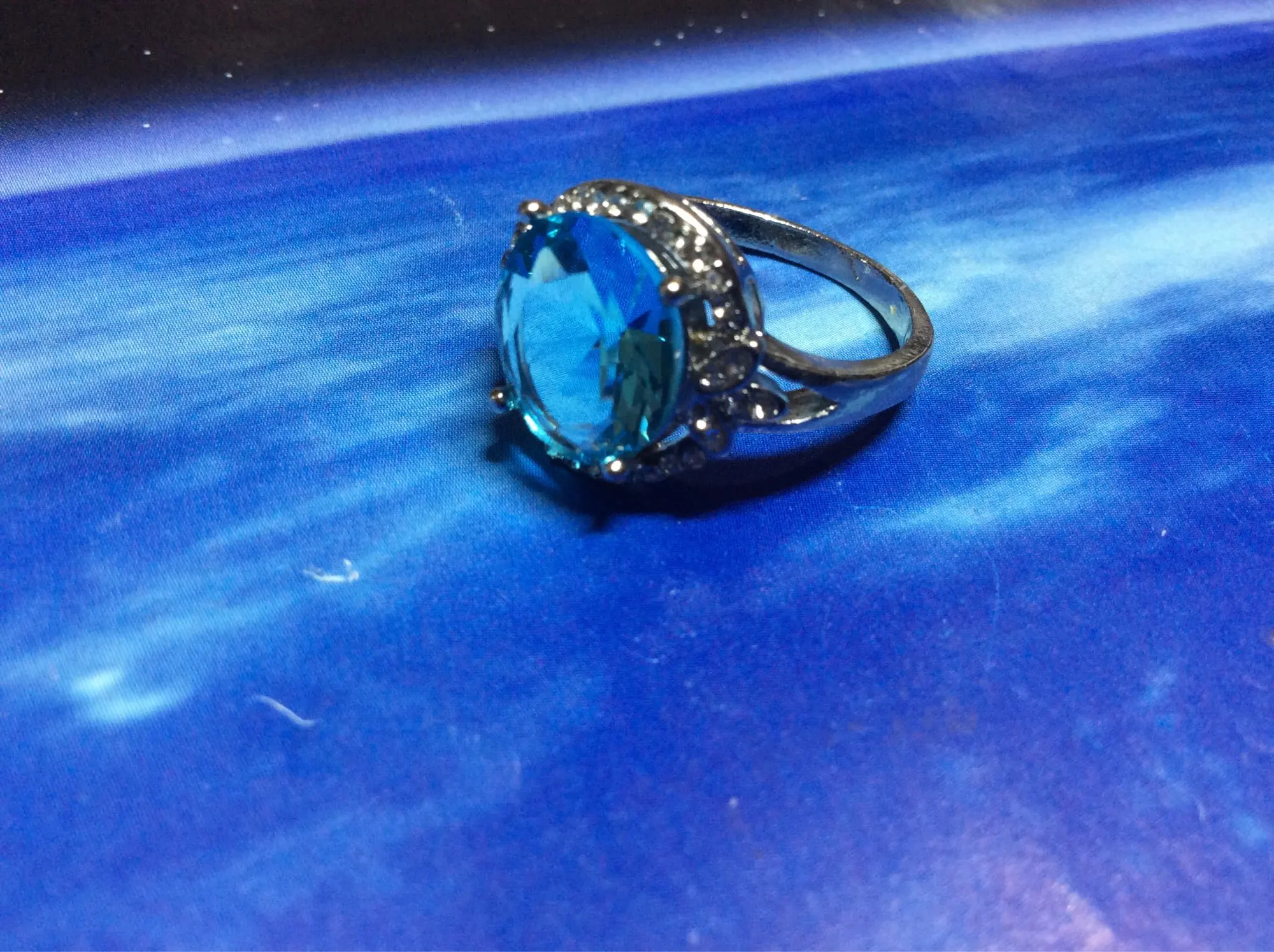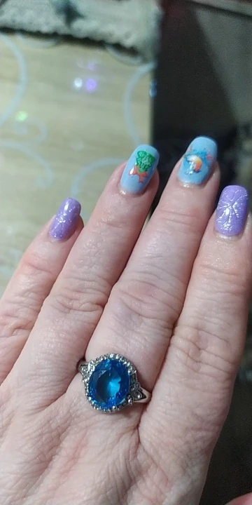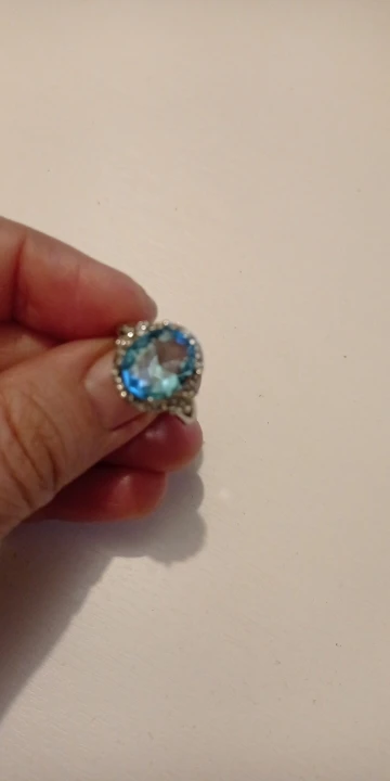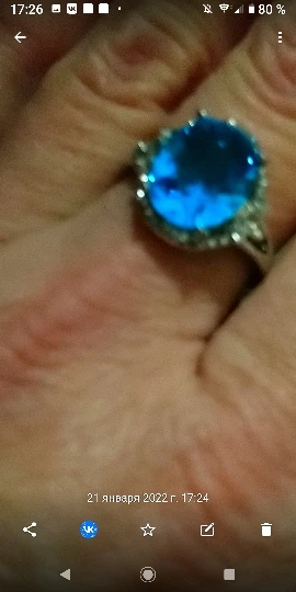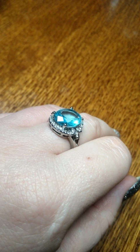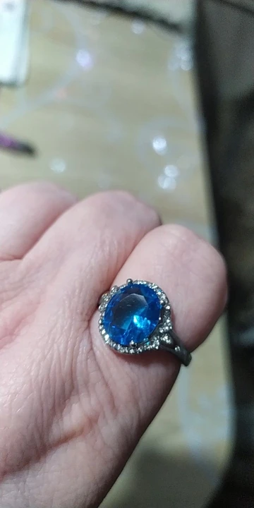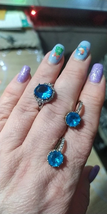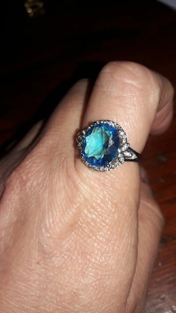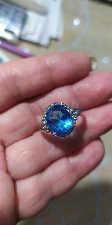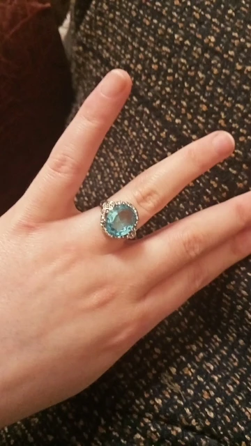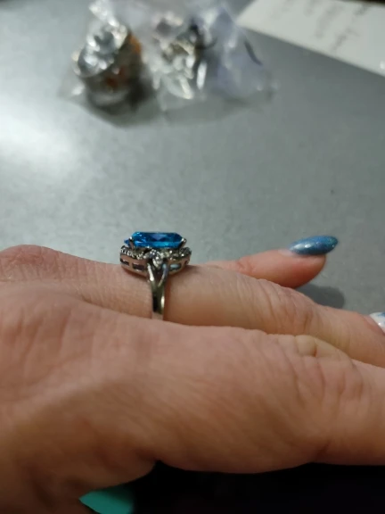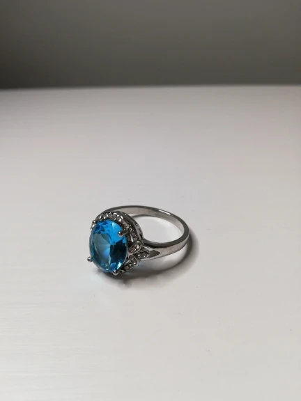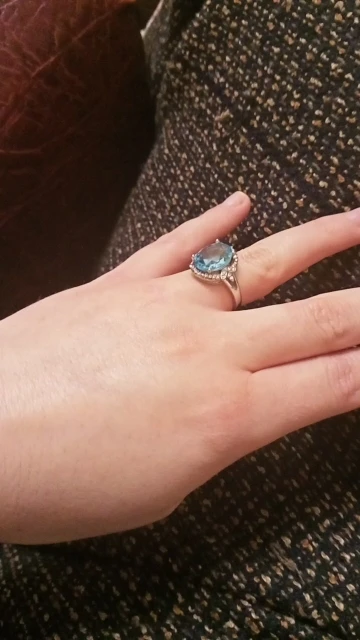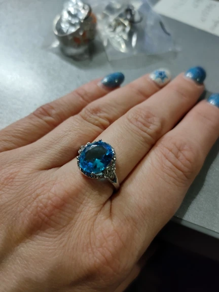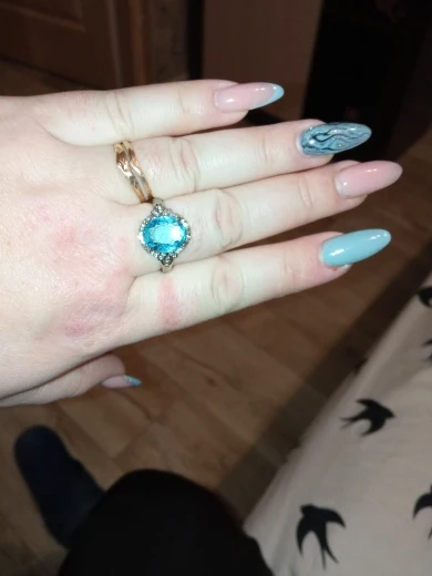 качество изготовления, конечно, топорное, мелкие камни закреплены не ровно, и без просветов сзади, голубой камень красивый, по размеру 5 не меньше 15.7, надевать иногда буду, пришло быстро