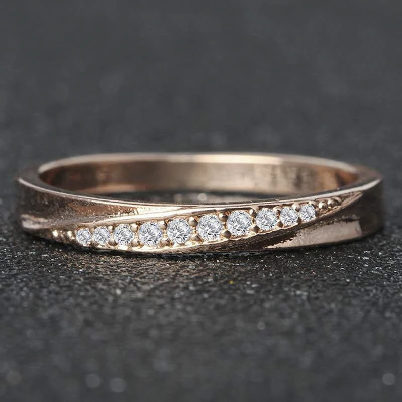 2022 горячая Распродажа розовое золото инкрустированное кристаллами одиночное кольцо для женщин праздничные обручальные кольца ювелирные изделия оптовая продажа Размер 6-10