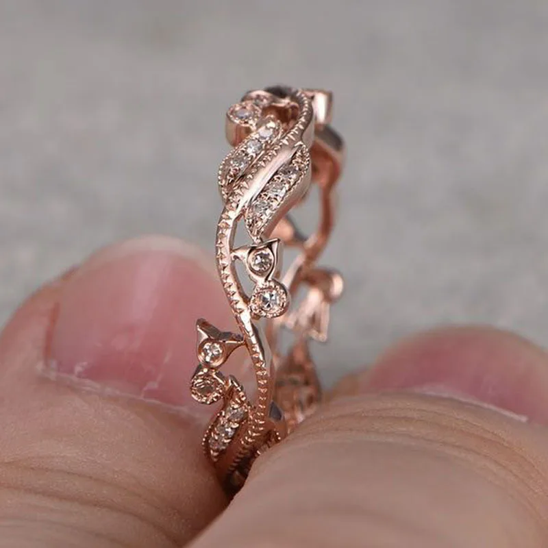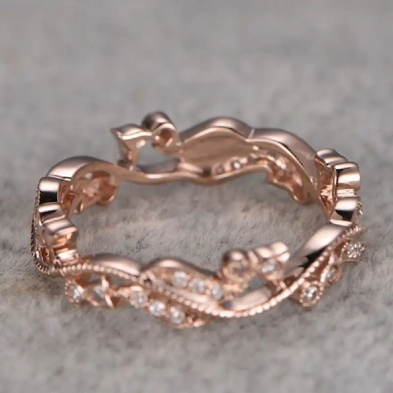 Милое обручальное кольцо с листьями, женское круглое кольцо с цирко...