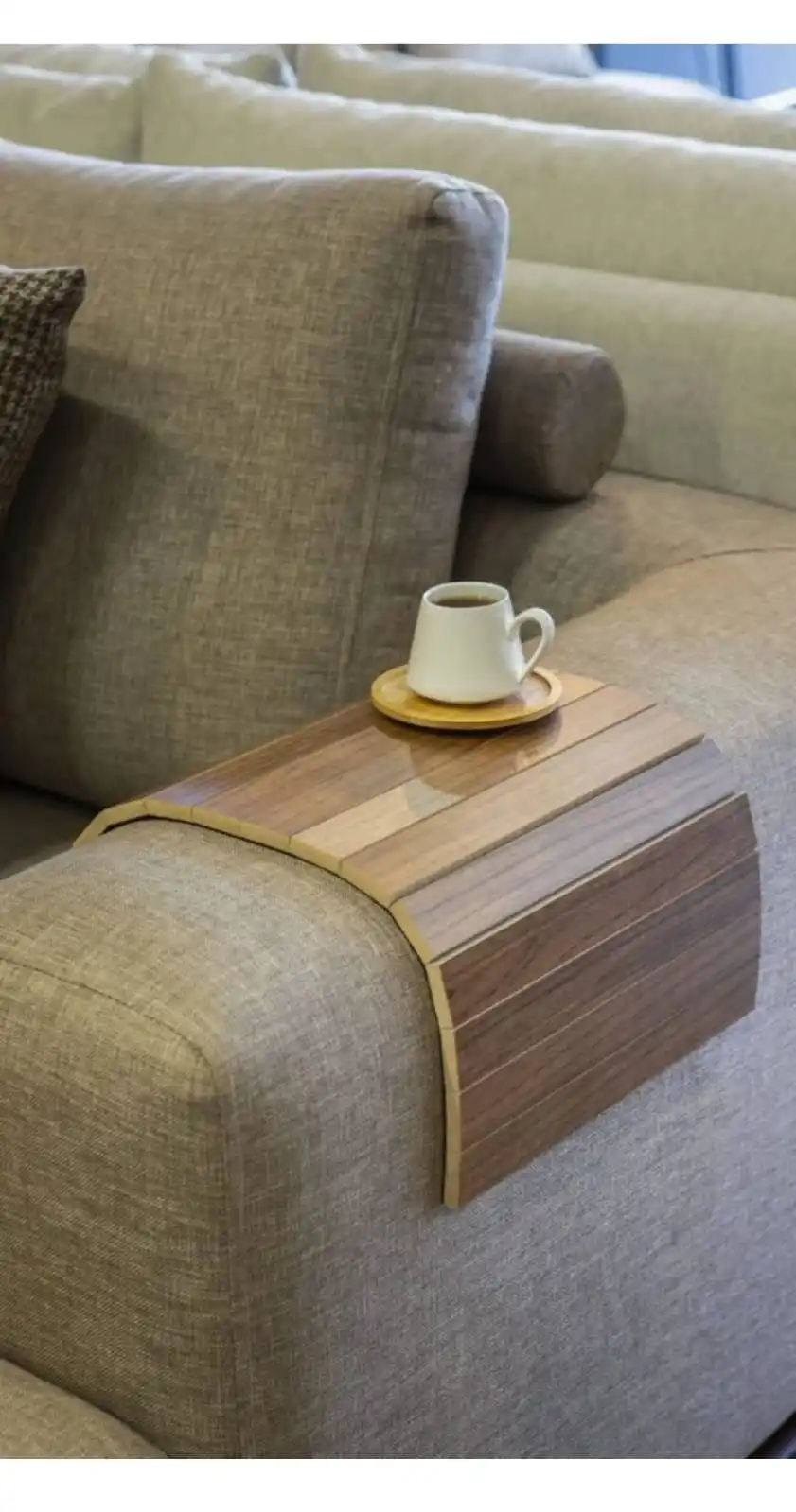Натуральный декоративный деревянный поднос для дивана Цвет ореха Складной подлокотник Диван Боковой столик Подлокотник Поднос для дивана Боковая подставка для сиденья Стильный функциональный органайзер Подставка для