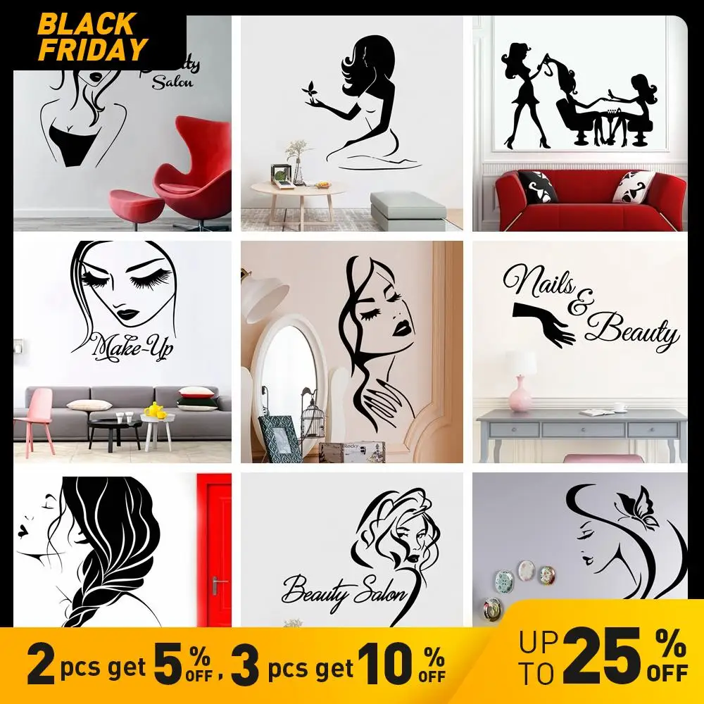 Виниловая настенная наклейка для салона красоты, домашняя декоративная настенная бумага для гостиной, спальни, макияжа, настенная художественная наклейка, фрески