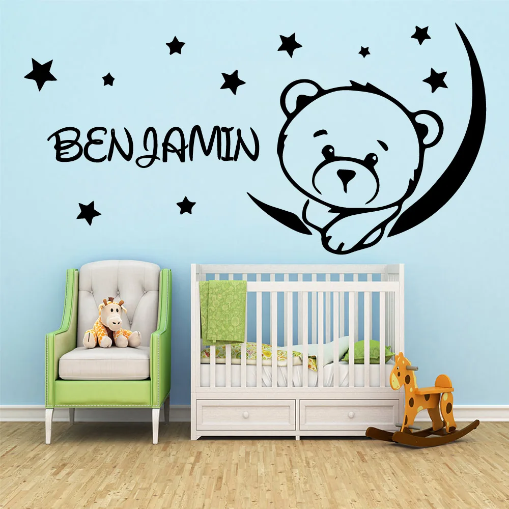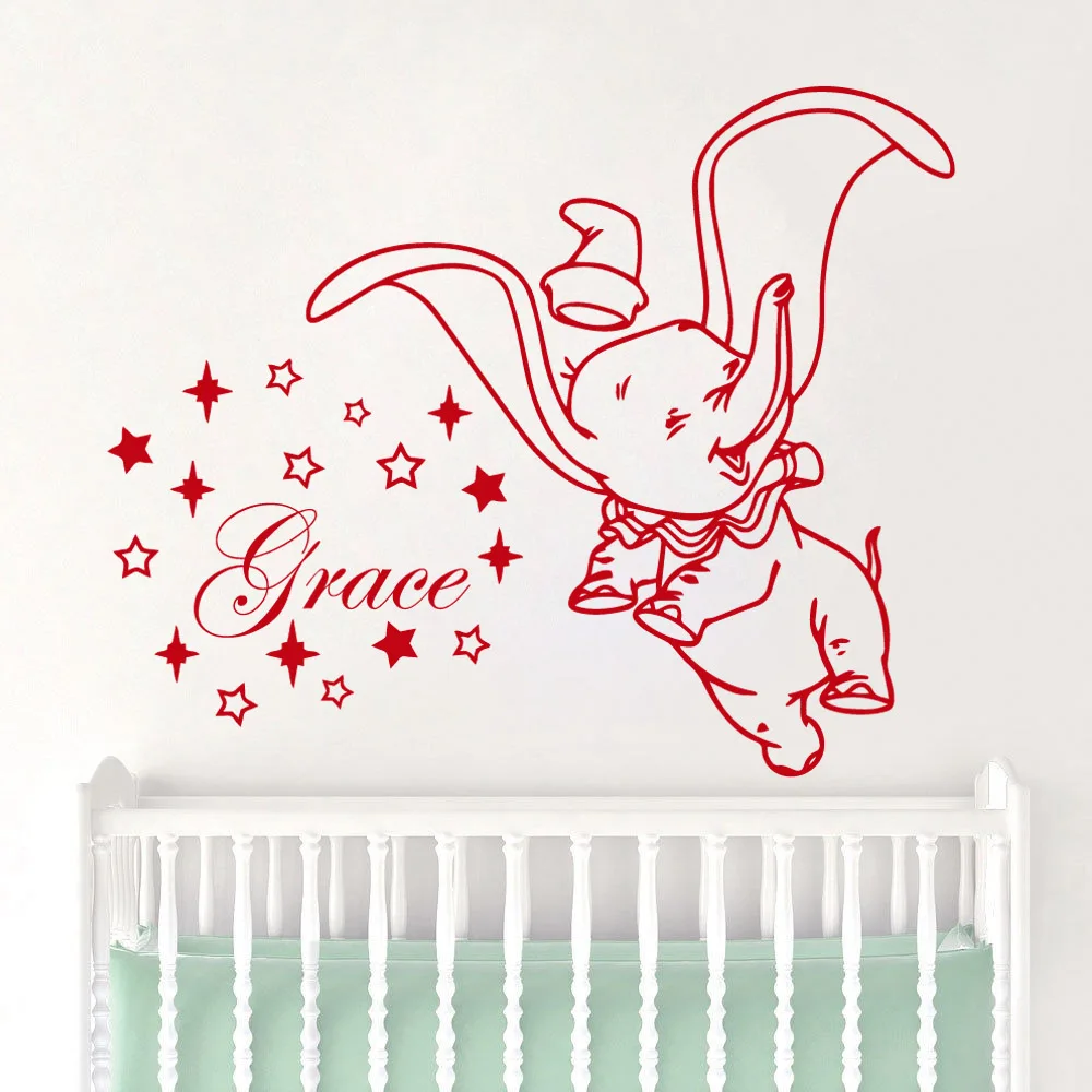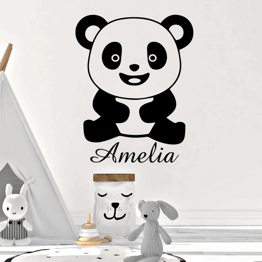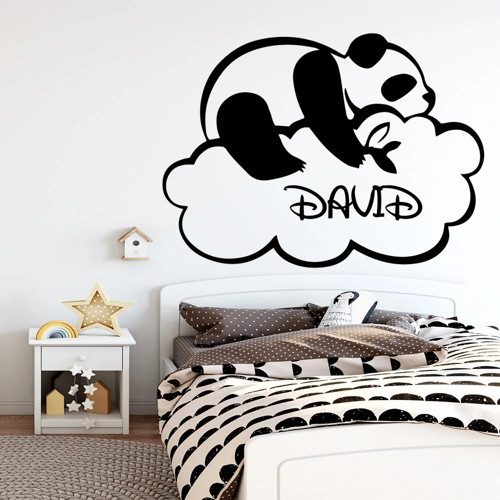 Милый слон панда с именем на заказ переводная наклейка Съемная виниловая настенный плакат для декора детской комнаты Настенная роспись Прямая доставка