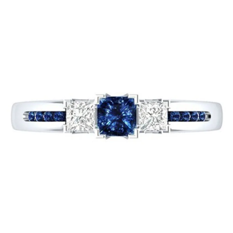 Кольцо унисекс с голубым квадратным цирконием для мужчин и женщин, ...