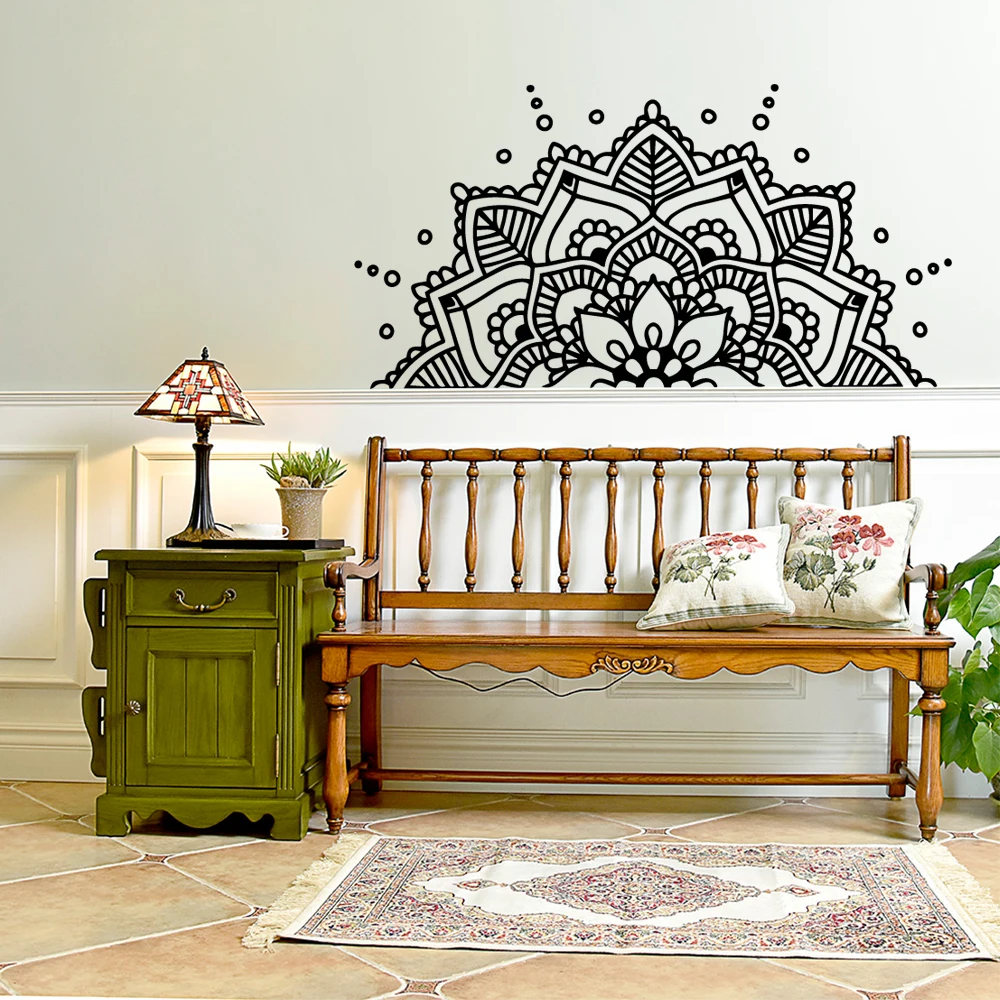 Половина Наклейка на стену Мандала для дома, изголовье для медитации, йоги, съемная виниловая наклейка, настенная живопись, гостиной, спальни