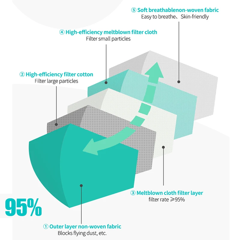 Feature 5Reusable KN95 Face Mask/Dust Mask/Anti-fog And Breathable Face Masks