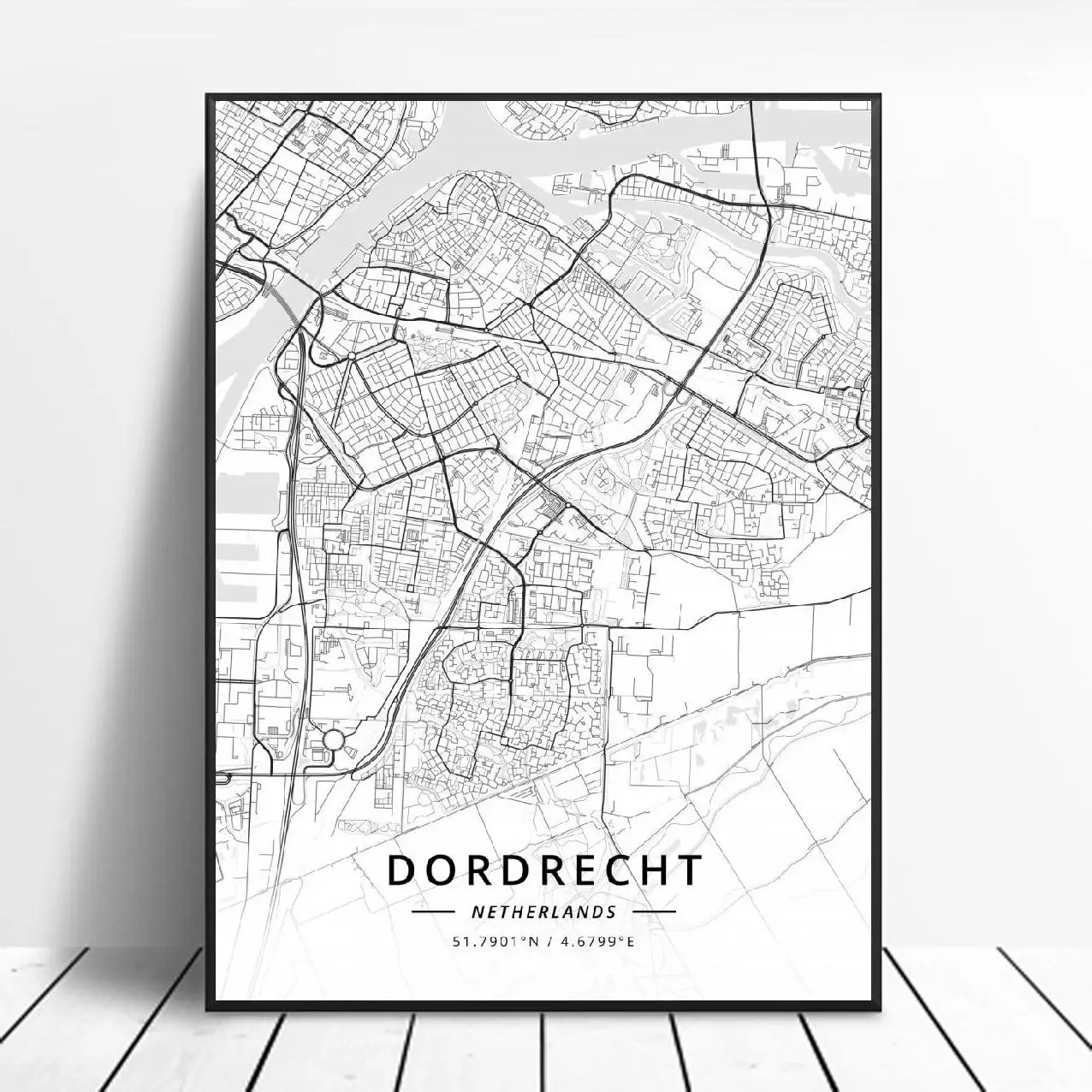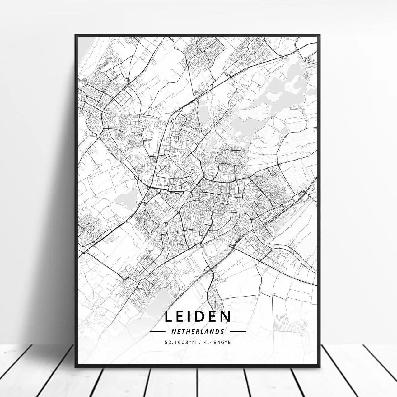 Постер с картой Голландии Гаага Лейдена ферлен Амстердам дендрехт леуварден